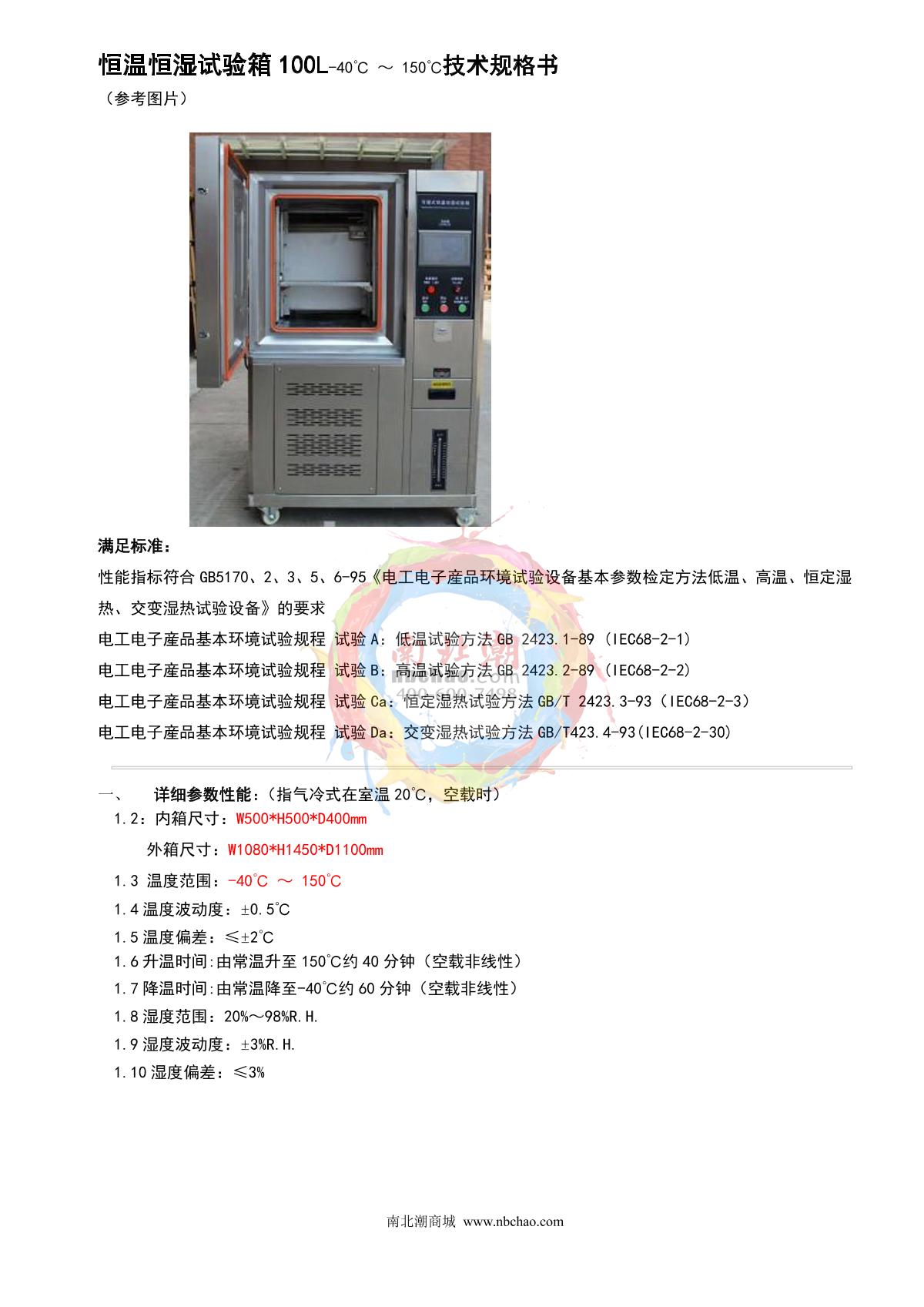 HuiTai NBC-LHS-100L Humidity Test Chamber brochure