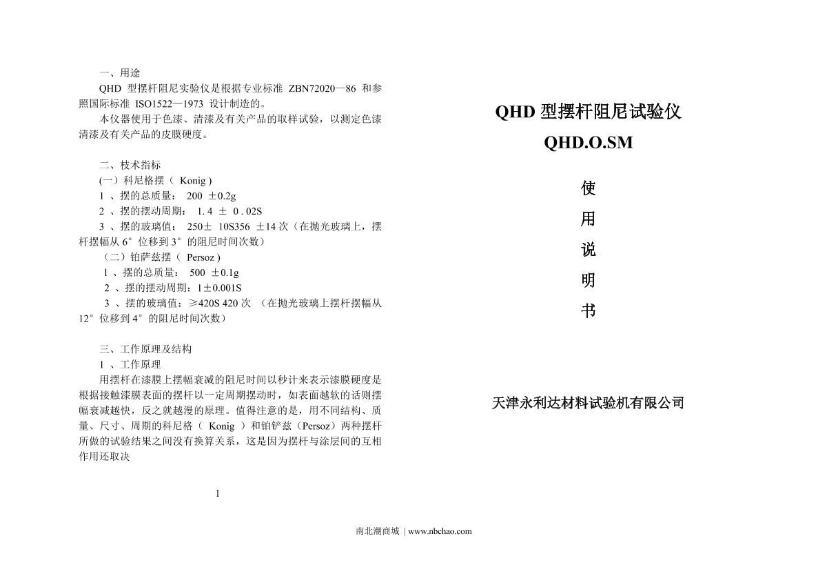 YongLiDa QHD Pendulum damping Tester Manual,OI