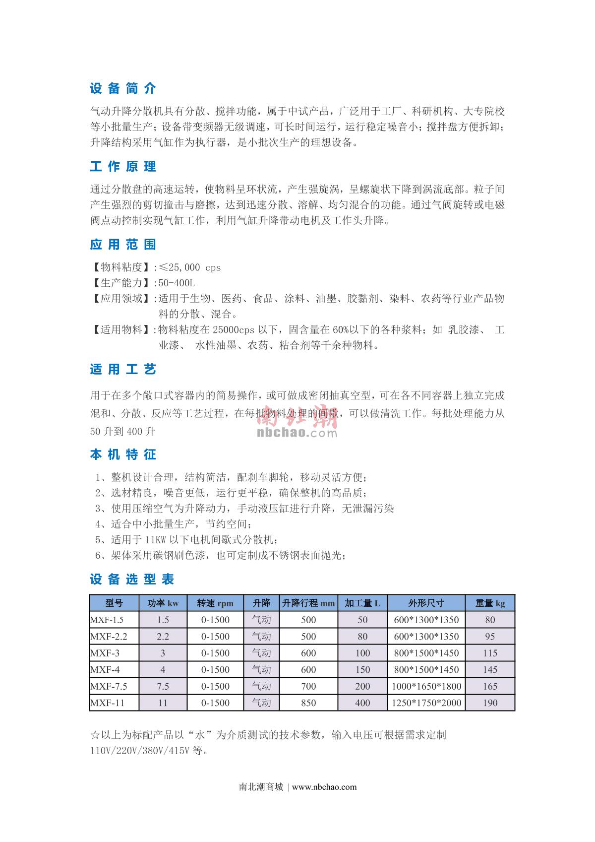MuXuan MXF-1.5 Pneumatic Lifting Disperser brochure