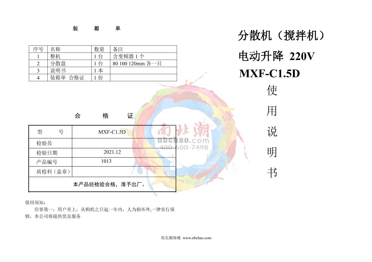 MuXuan MXF-C1.5 Experimental Small Batch Dispersion Stirrer Manual,OI