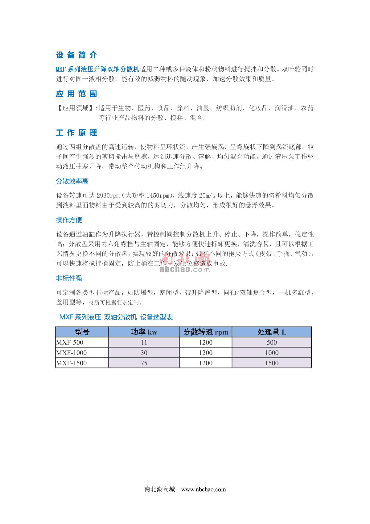 MuXuan MXF-1500 Double Axis Hydraulic Lifting Disperser brochure