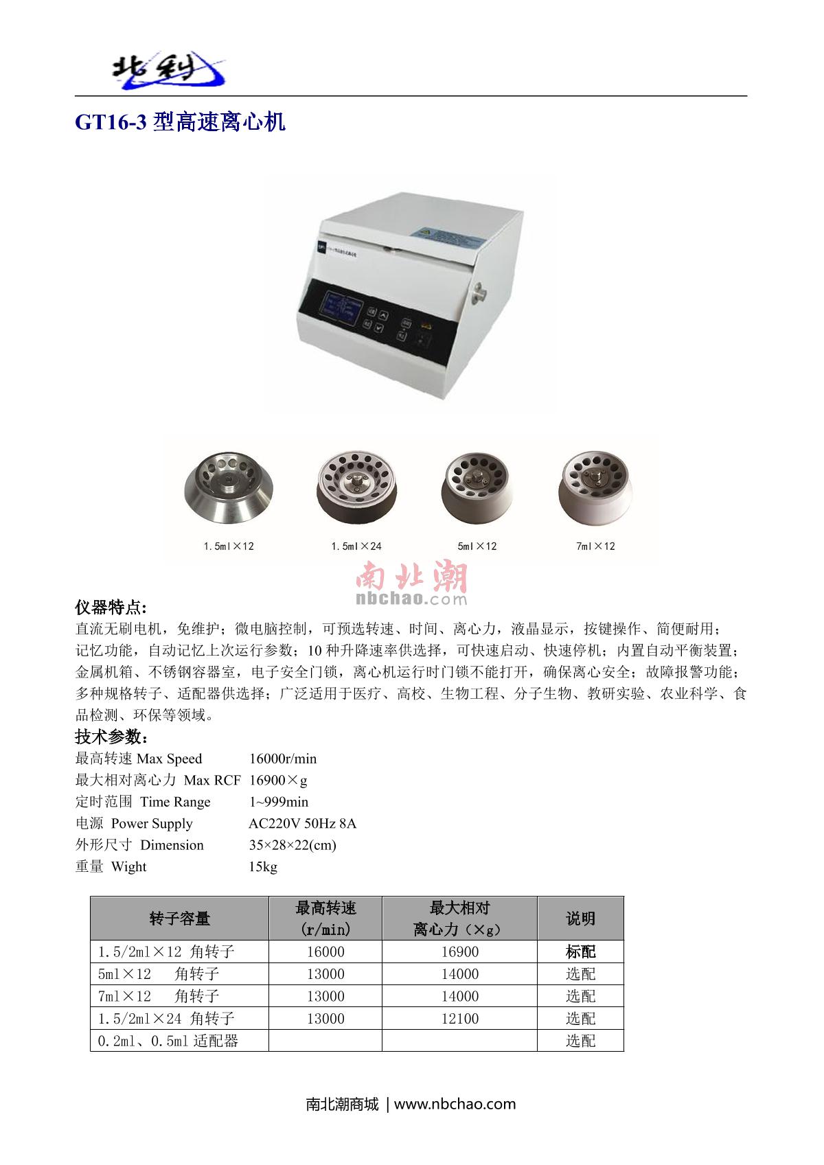 shidaibeili GT16-3 High Speed Centrifuge brochure