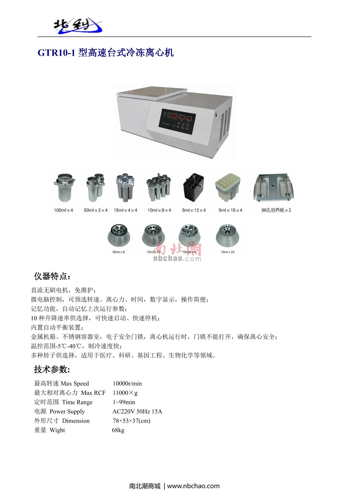 shidaibeili GTR10-1 High Speed Desktop Refrigerated Centrifuge brochure