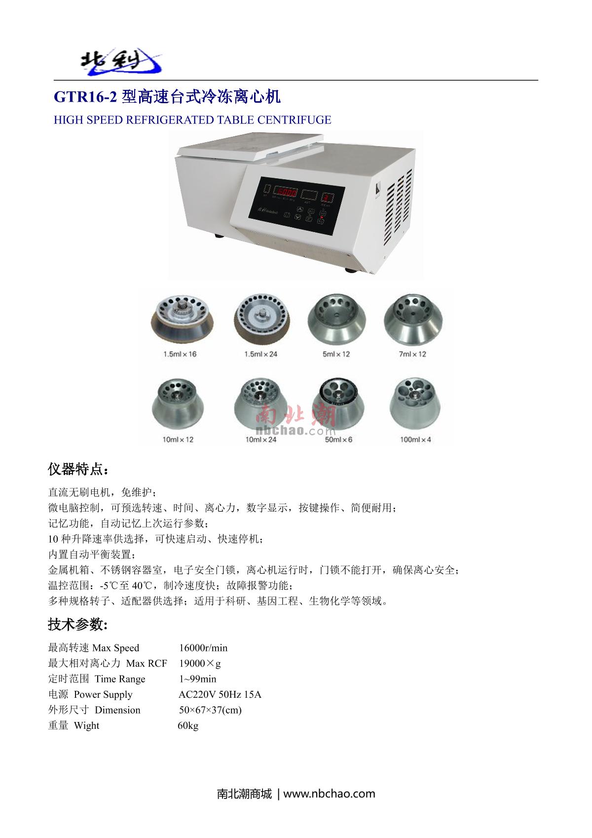 shidaibeili GTR16-2 High Speed Refrigerated Centrifuge brochure