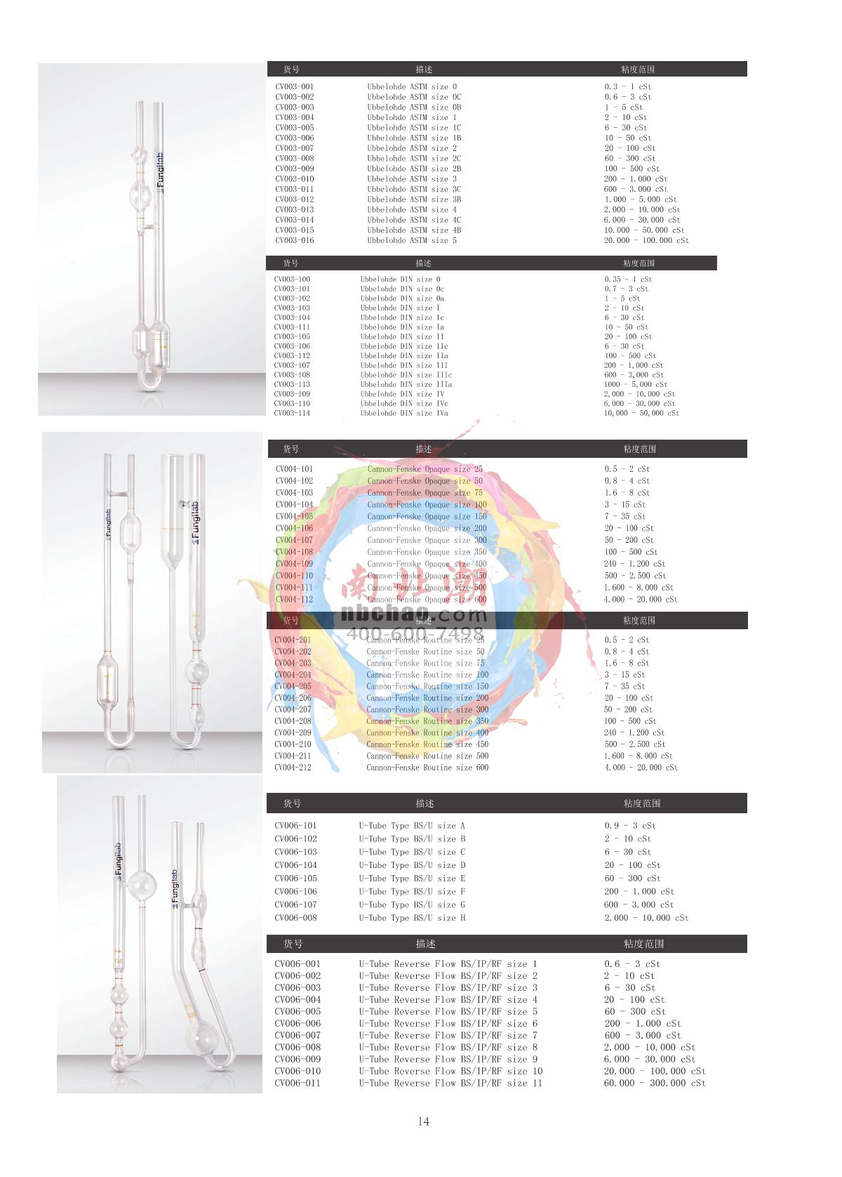 Fungilab CV003-014 Capillary Viscometer 6000-30000 cStUbbelohde ASTM size 4C6000~30000 cSt¥2400.0SE -