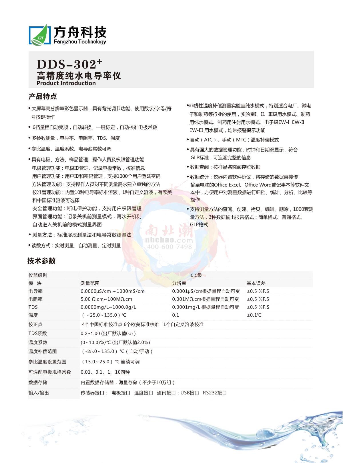 FZchina DDS-302+ High-precision pure water conductivity meter brochure