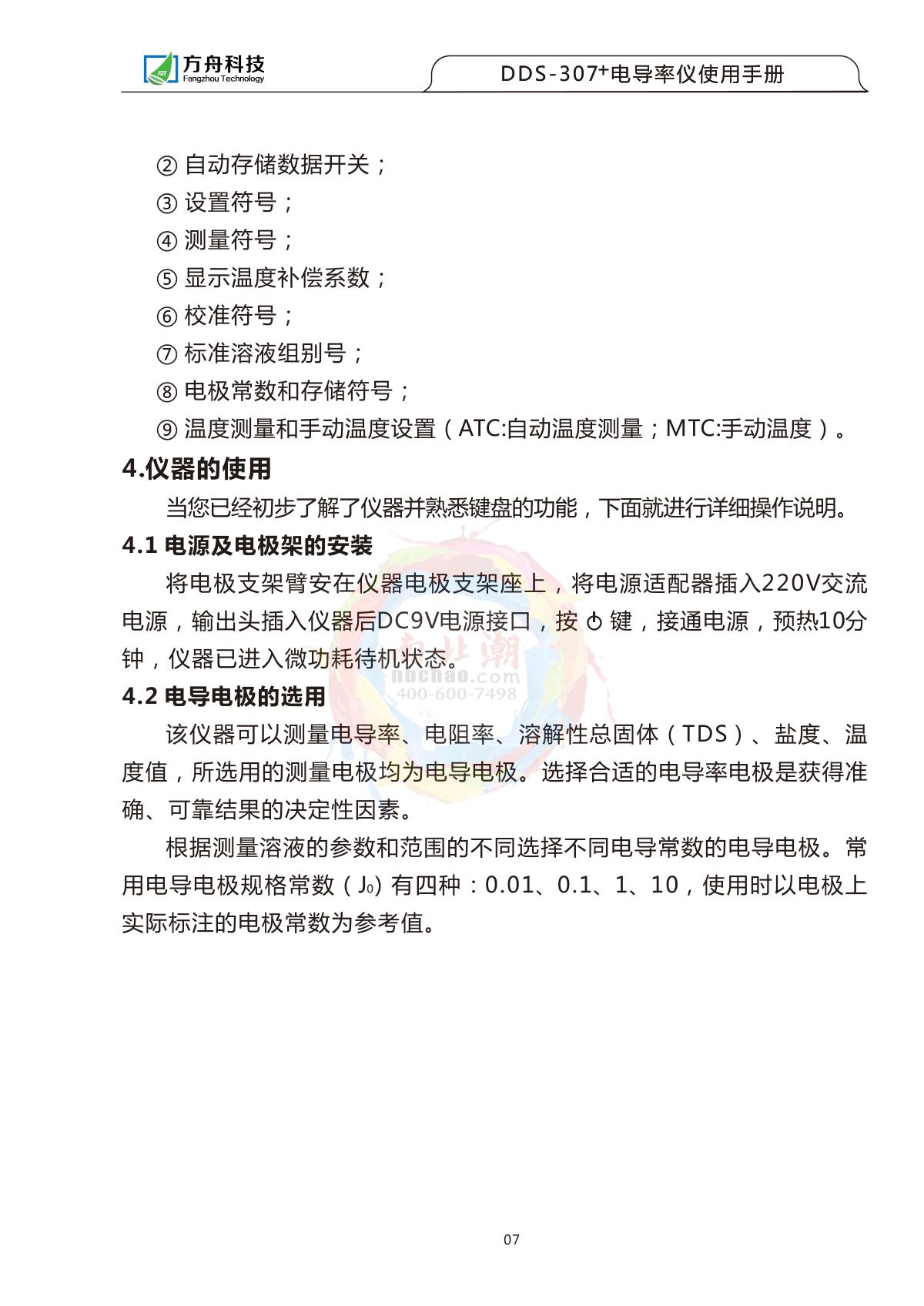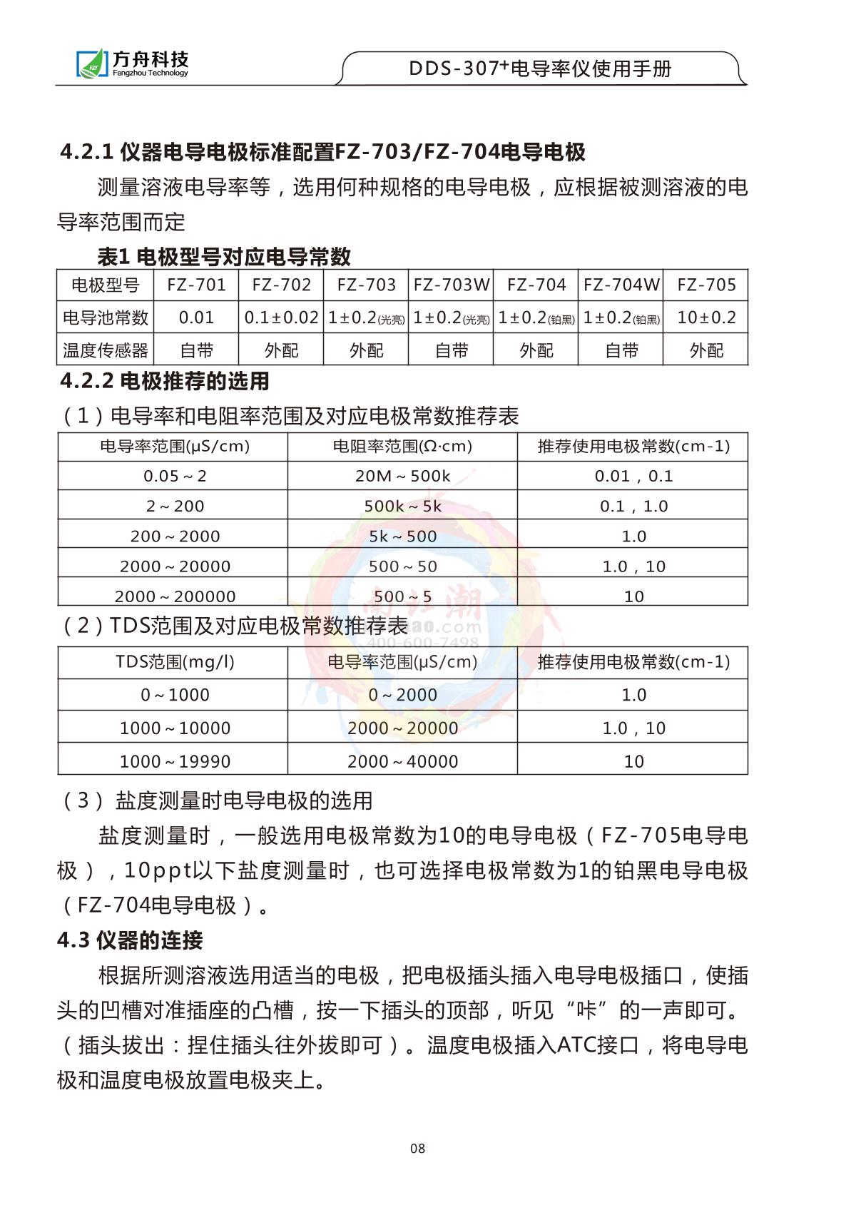 FZchina DDS-307+ Economical Conductivity Meter Manual,OI