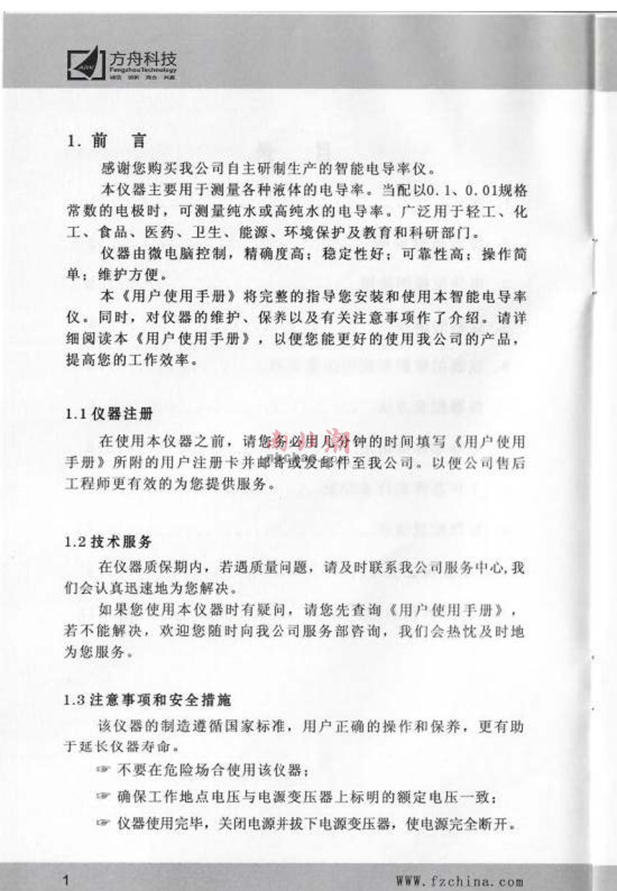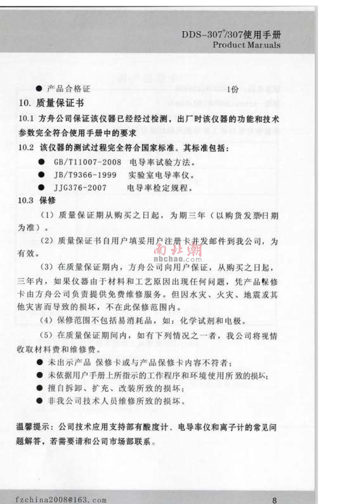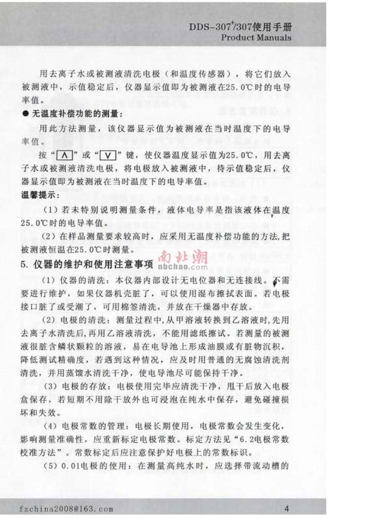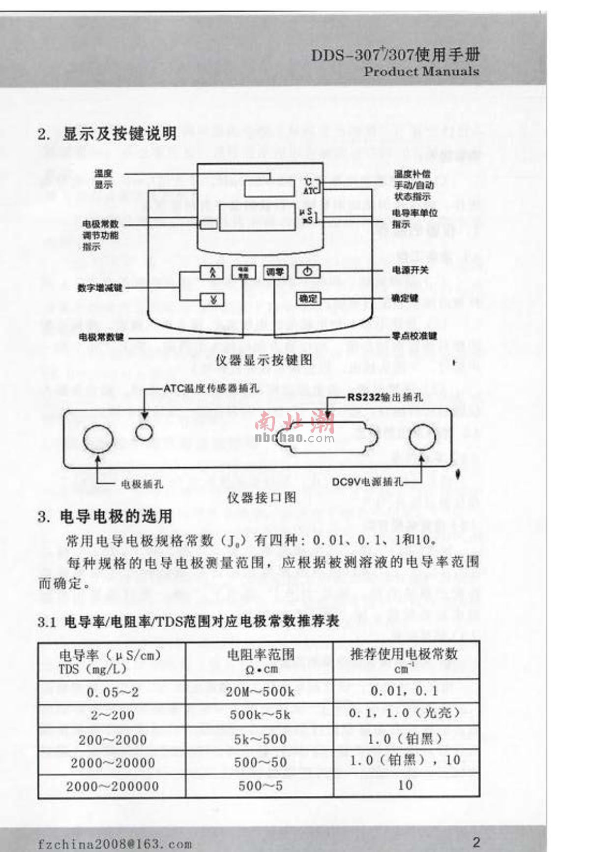 FZchina DDS-307 Economic Conductivity Meter Manual,OI