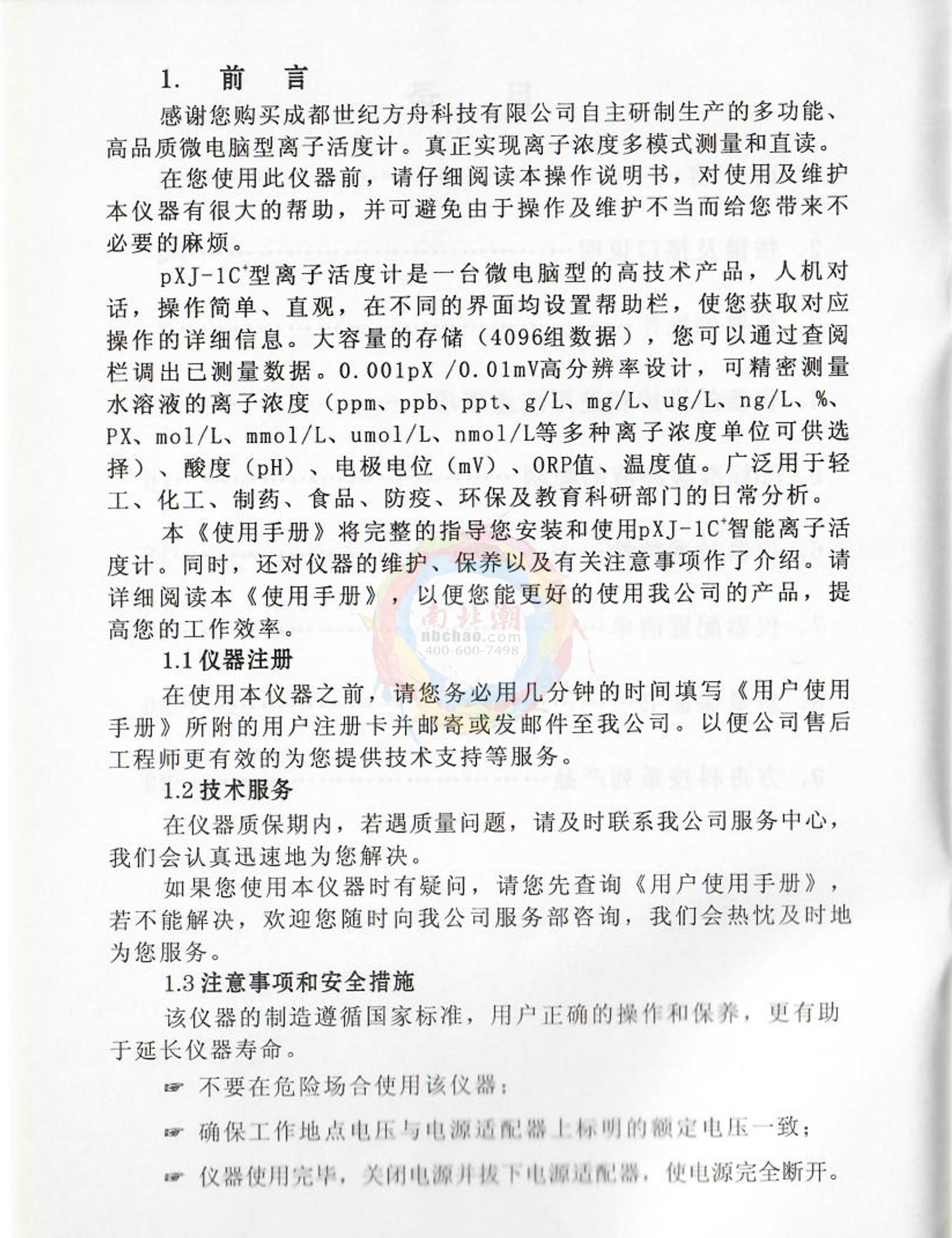FZchina PXJ-1C+ High-precision Ion Meter Manual,OI