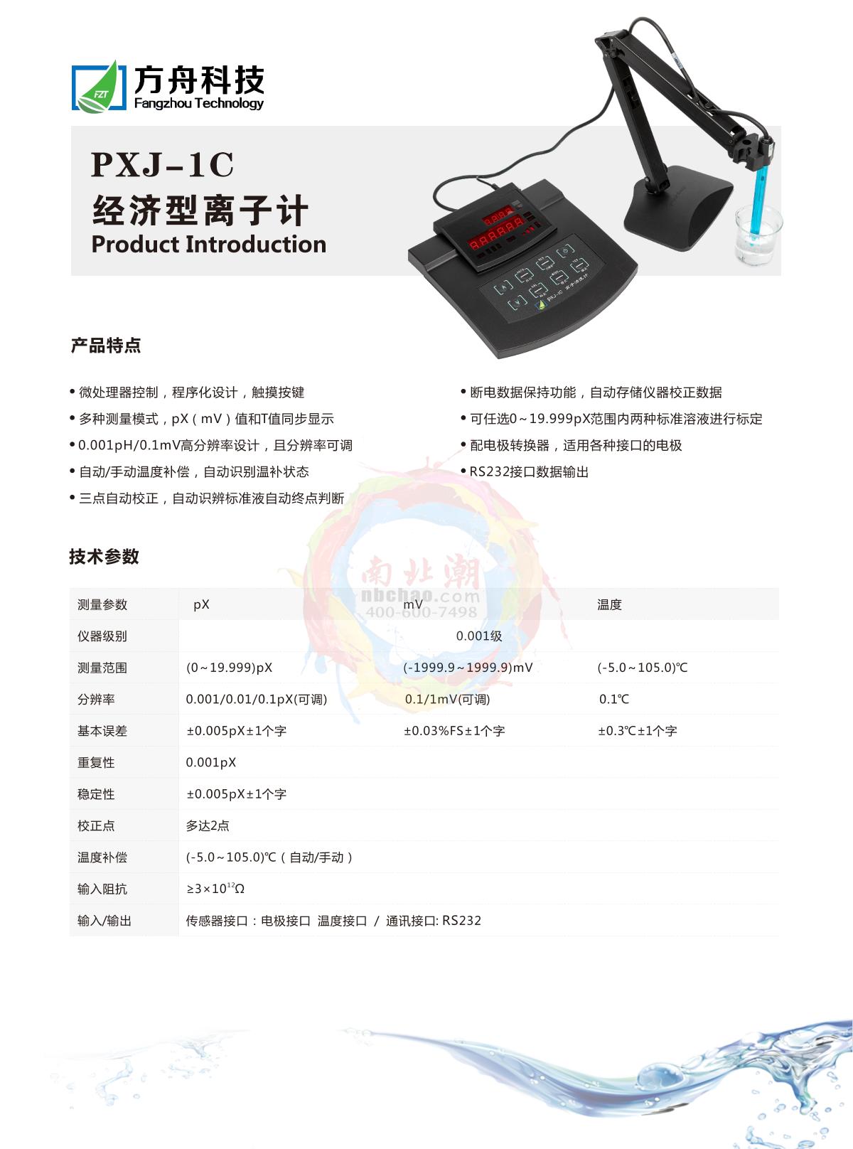 FANGZHOU PXJ-1C economical Ion Meter 0.001 grade PX/MV/TLevel 0.001(0~19.999)pX001/0.01/0.1pX (adjustable)¥3700.0SE -