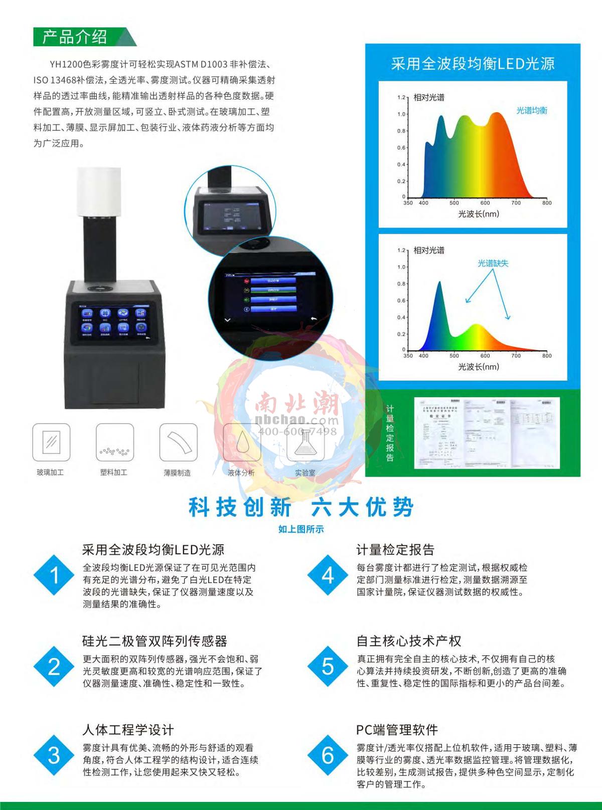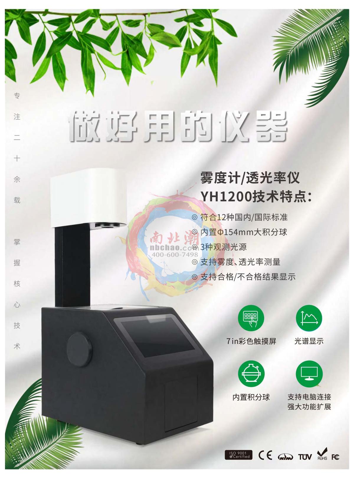 3NH YH1100 haze Tester φ 8mmTransmission: 0/D (parallel light illumination, diffuse reflection reception) Compliant with standards: ASTM D1003/1044, ISO 14782, GB/T 2410, JJF 1303-2011, CIE 15.2, JIS K7105, JIS K7361, JIS K 7136F154mm400~700Nm combined LED light sourceSE -