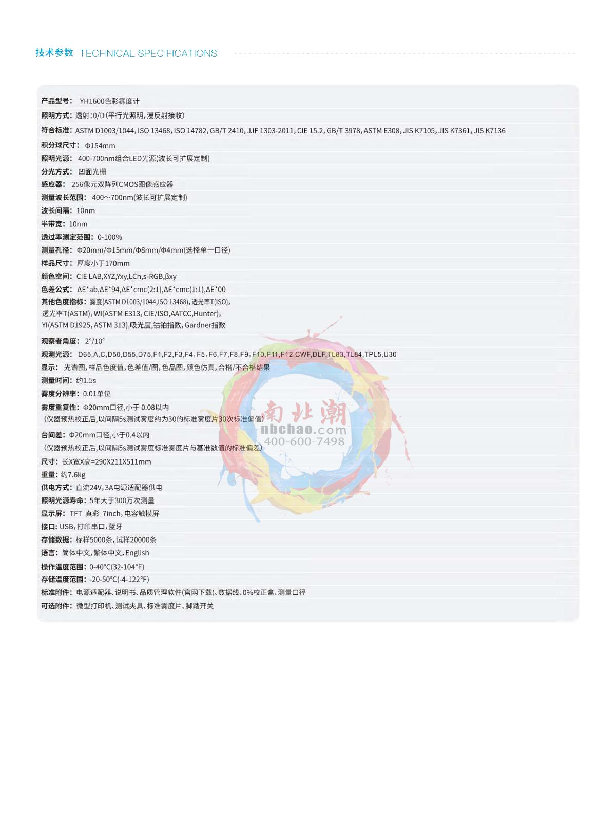 3NH YH1600(Φ8mm) Color haze meter brochure