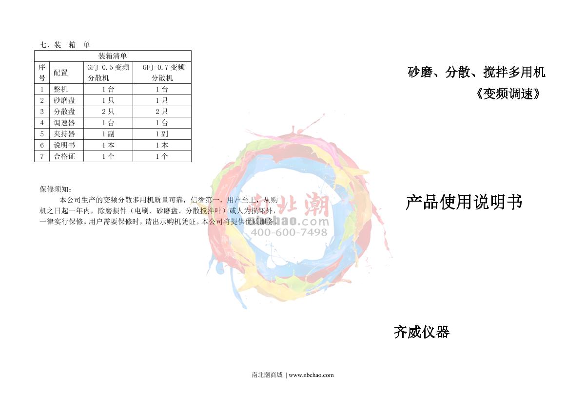 QiWei GFJ-0.5 / 5L Disperser (high-speed frequency conversion) Manual,OI