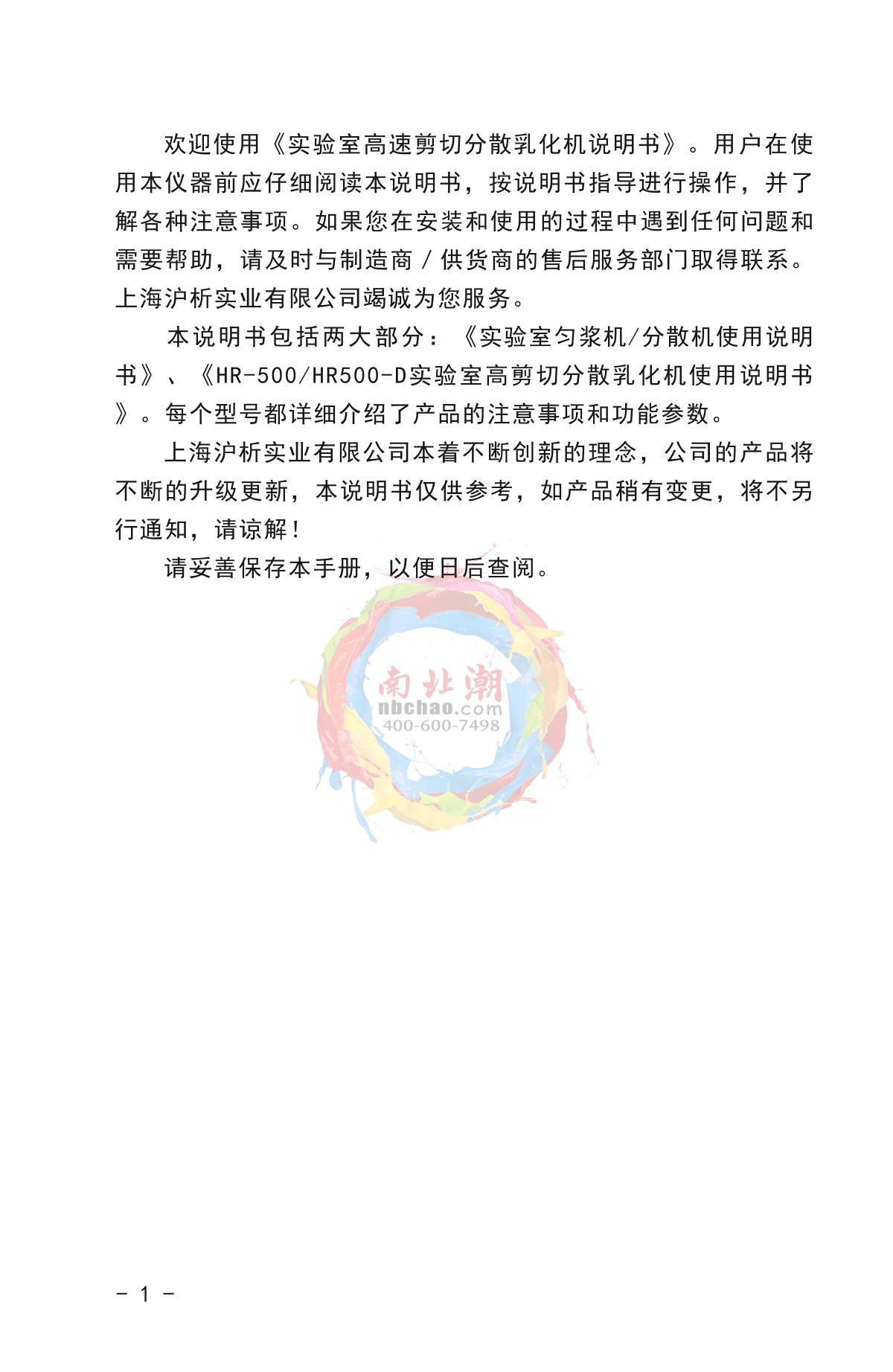 - 9HuXi HR-500/25G High Shear Dispersion Mulser Manual