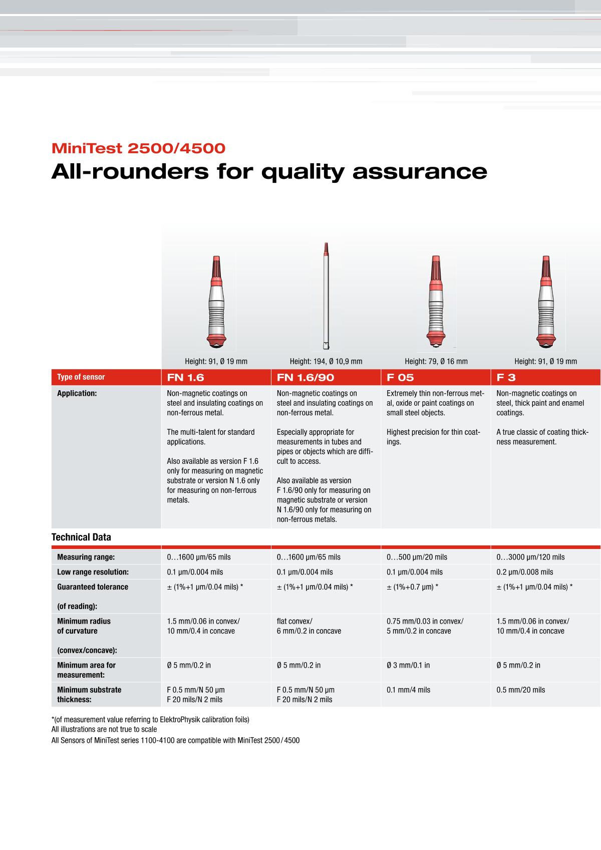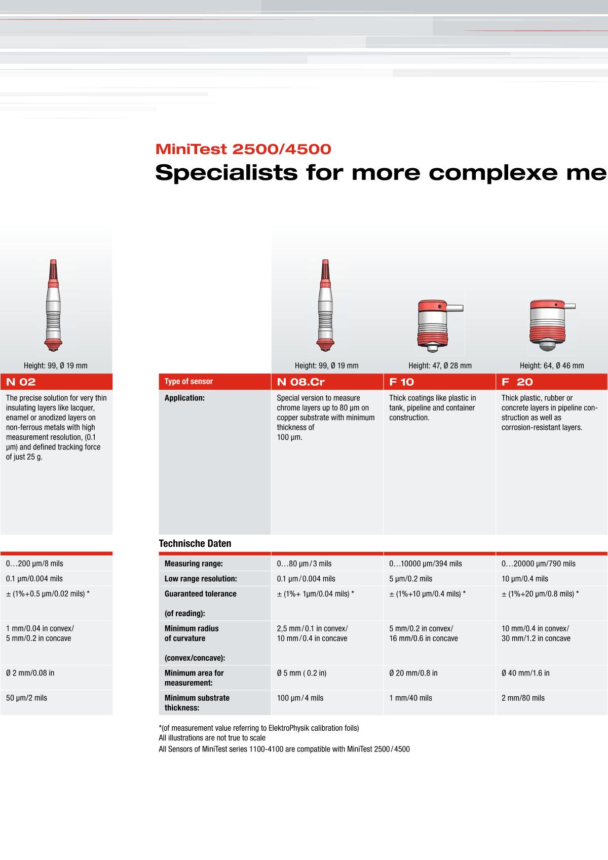 ElektroPhysik MiniTest 2500 N100 Coating Thickness Gauge brochure
