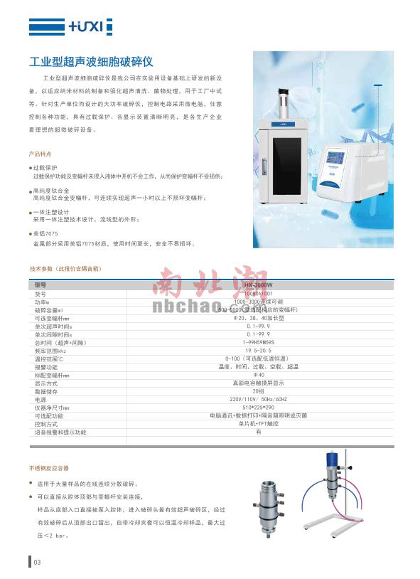 HuXi HX-3000W/Φ40mm Industrial ultrasonic crushing instrument brochure