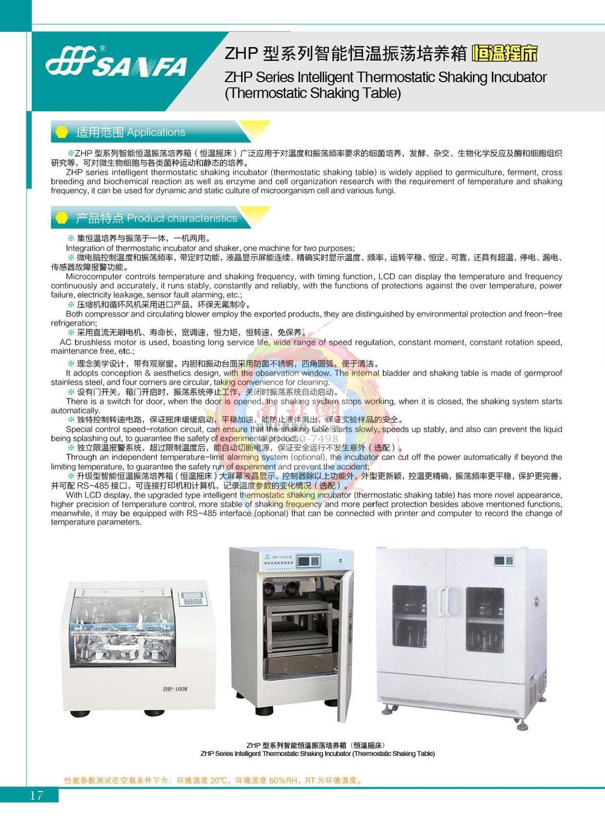 sanfa ZHP-250F Thermostatic shaking Incubator brochure