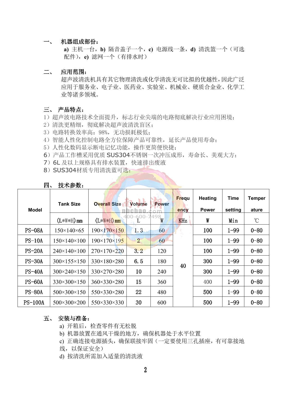 dksonic PS-60A Ultrasonic Cleaner Manual,OI