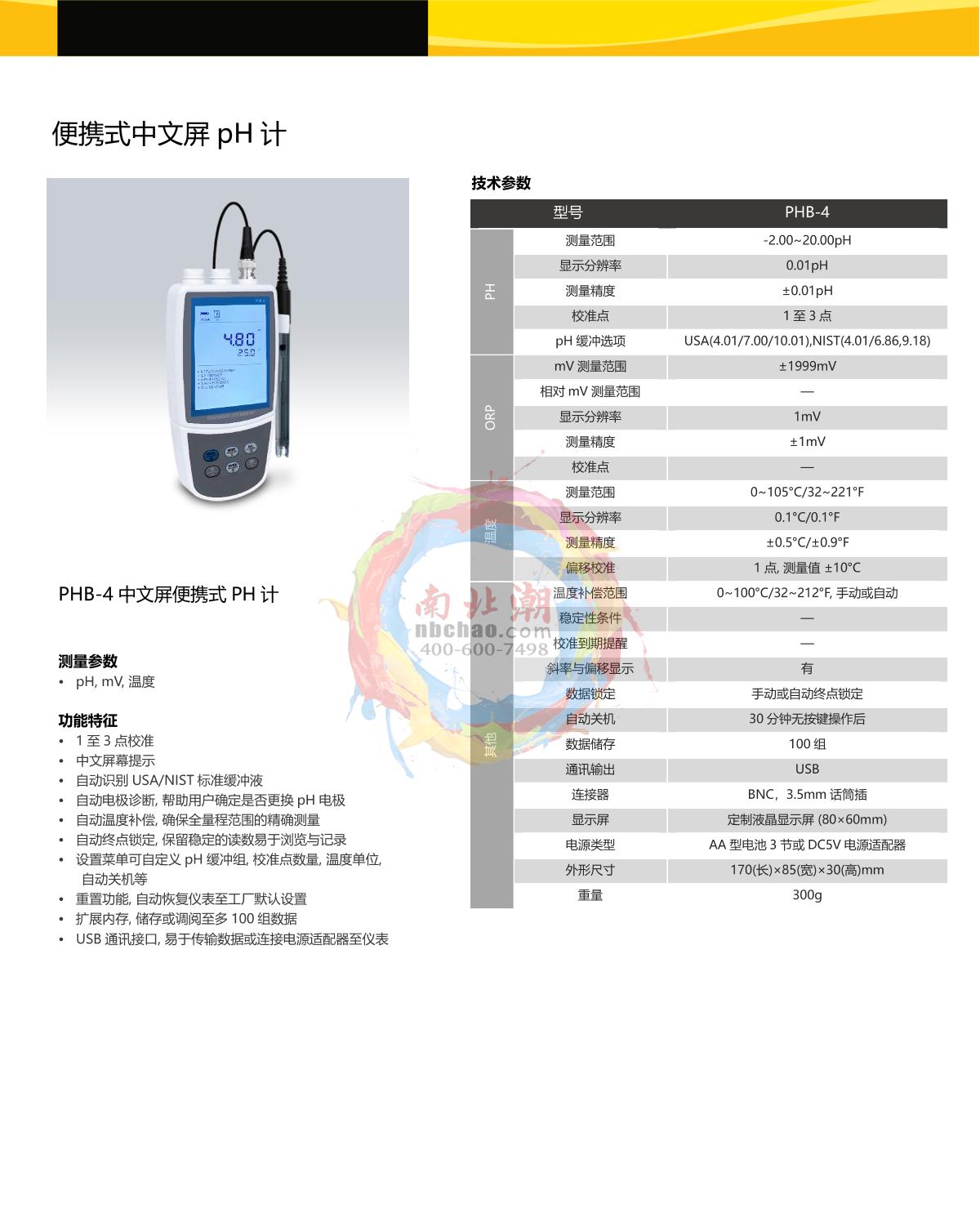 Bante PHB-4 Portable pH Meter brochure