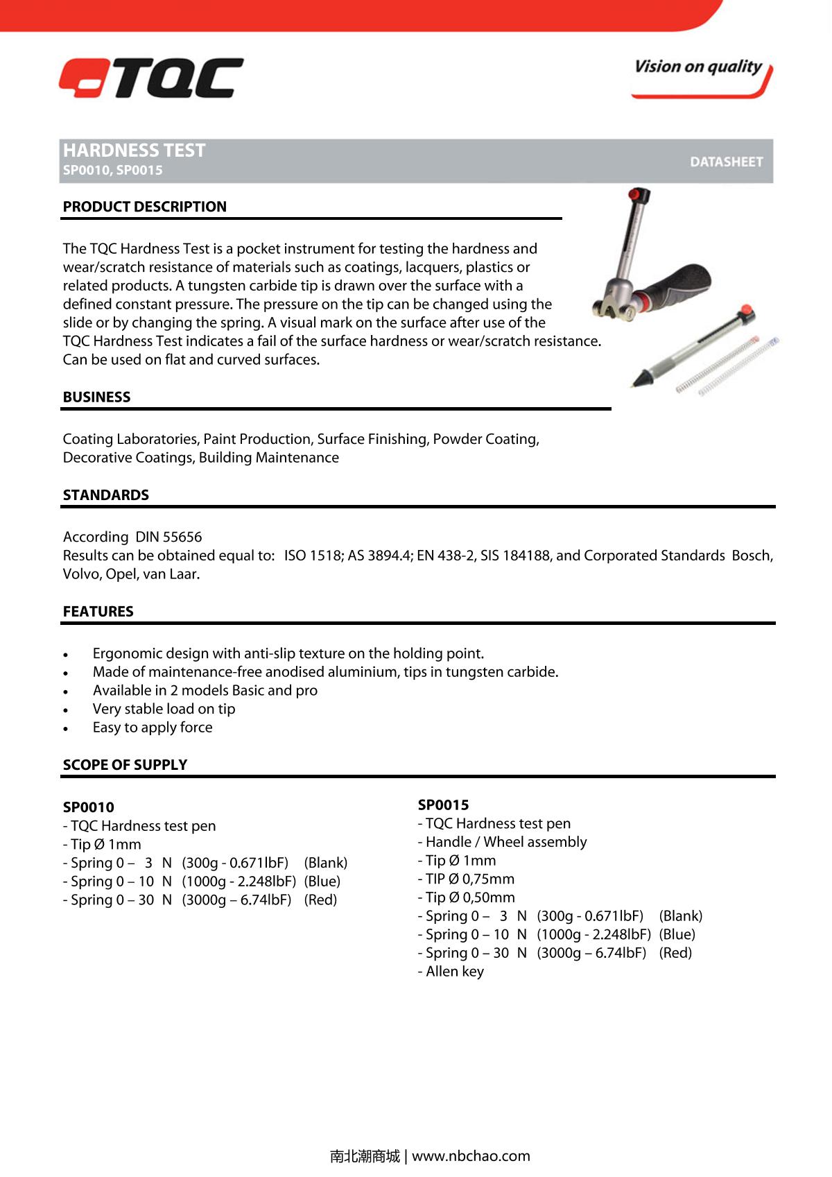 - 6TQC sheen SP0014 Hardness pen nib brochure