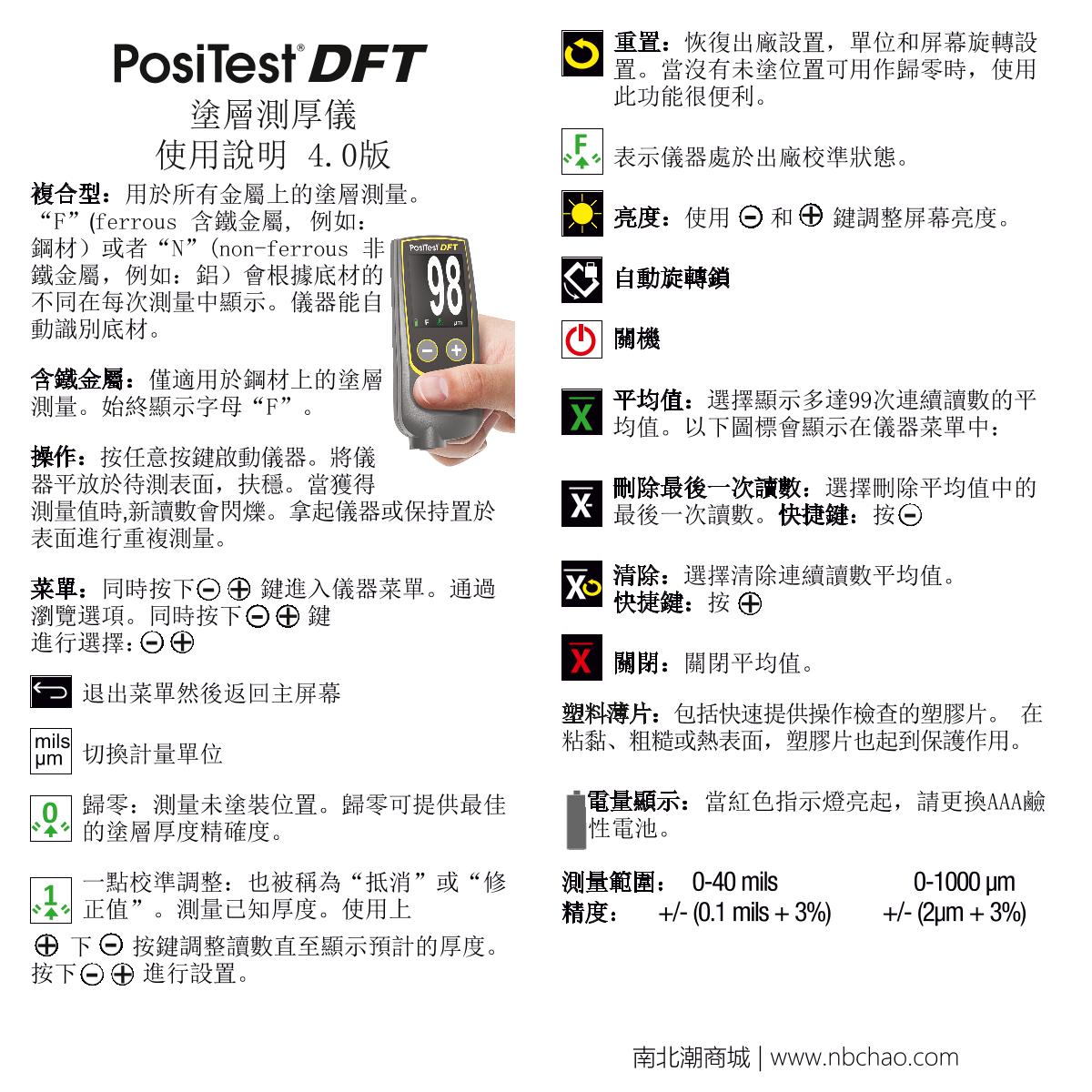 Defelsko PosiTest DFT Ferrous Thickness Gauge Manual,OI