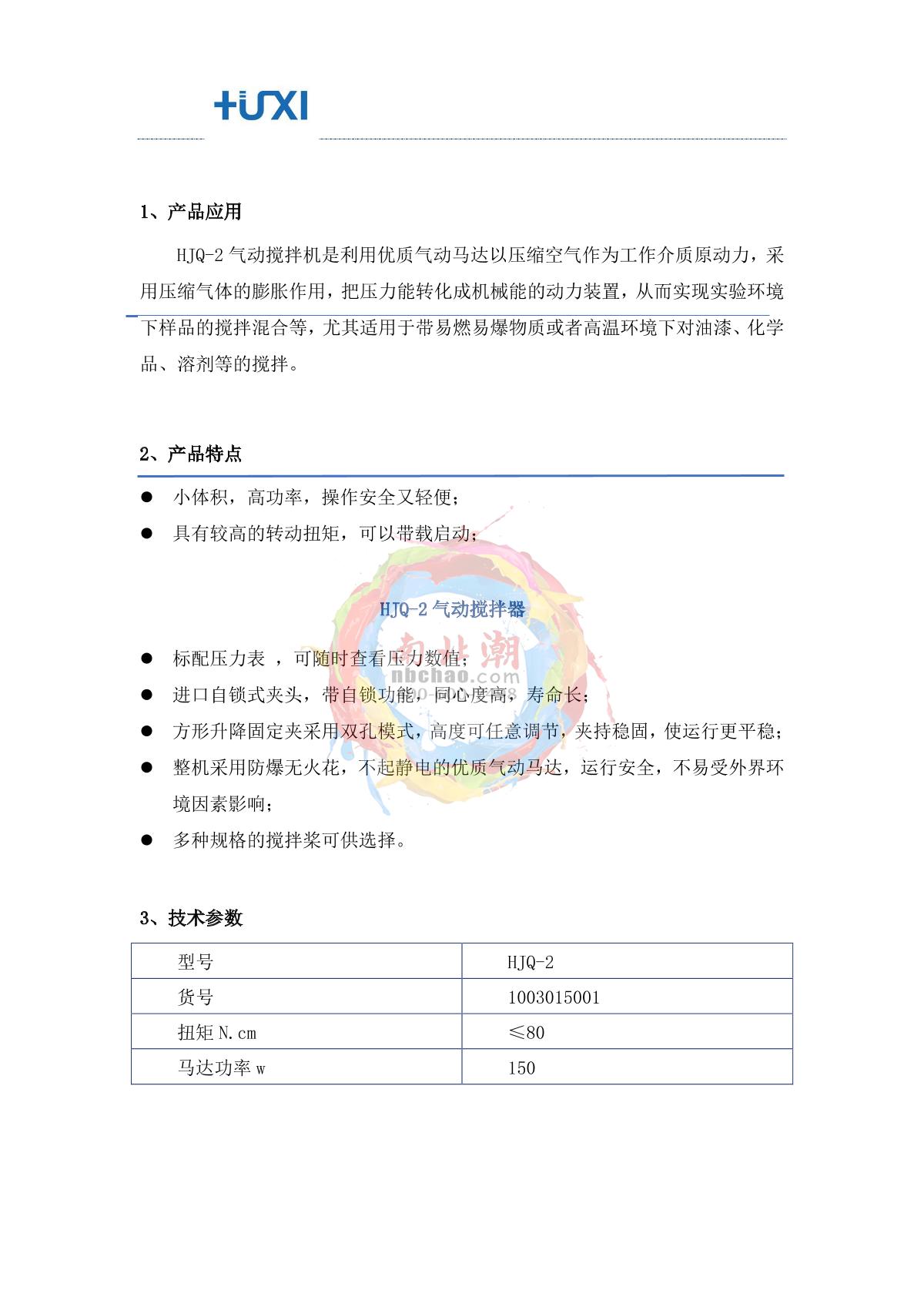 HuXi HJQ-2/20030037 Pneumatic Stirrer brochure
