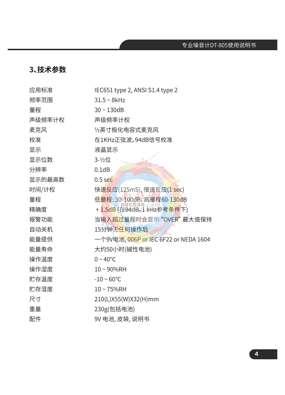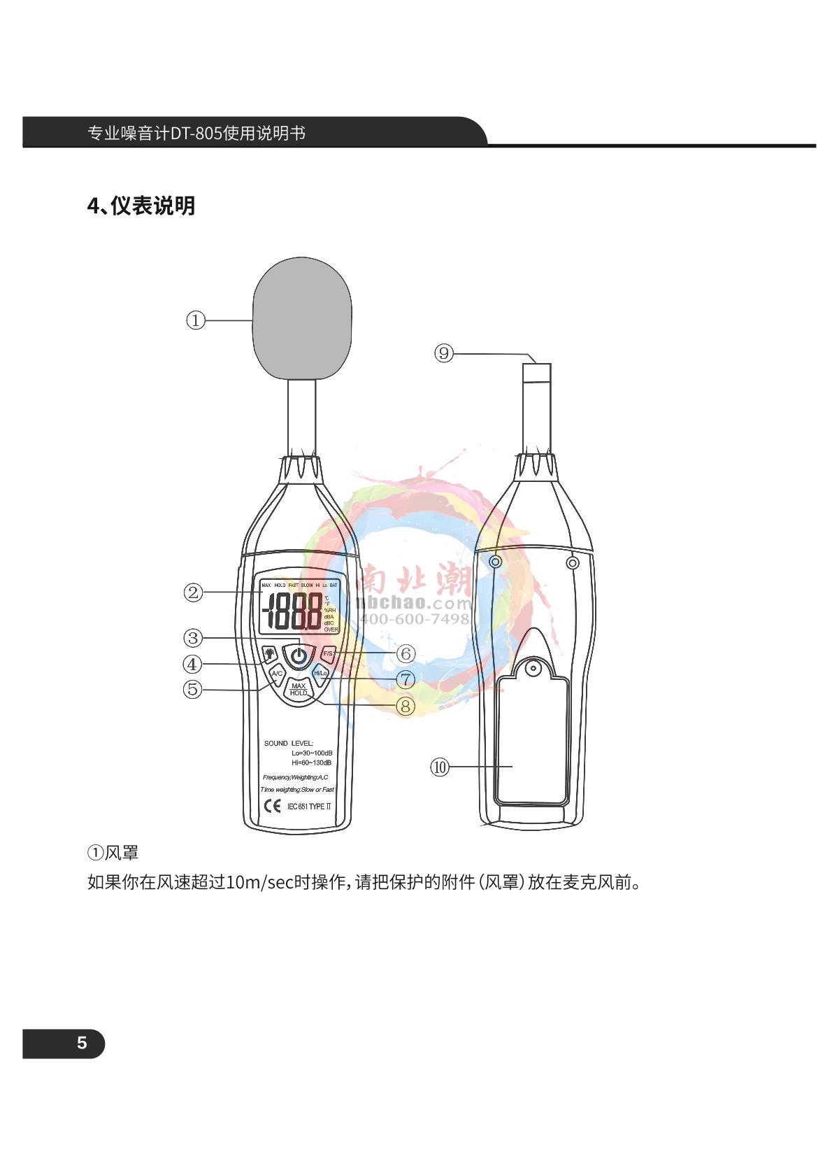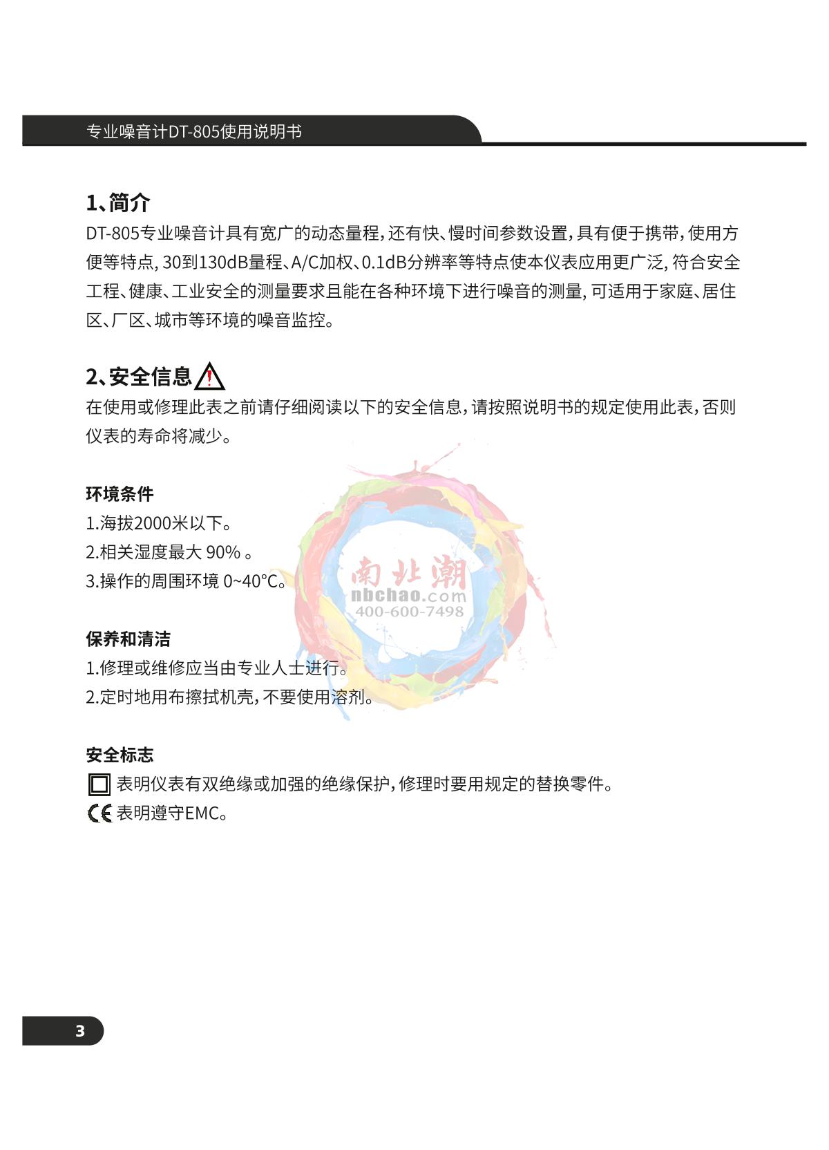 CEM DT-805 Professional Sound Level Meter Manual,OI