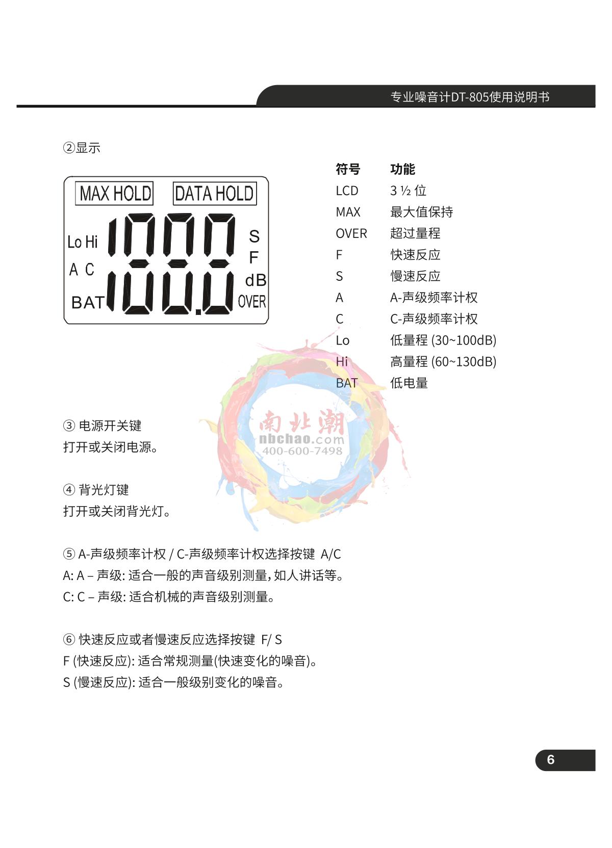 - 7Duban DB30-6228N Precision ordinary sound level meter Manual