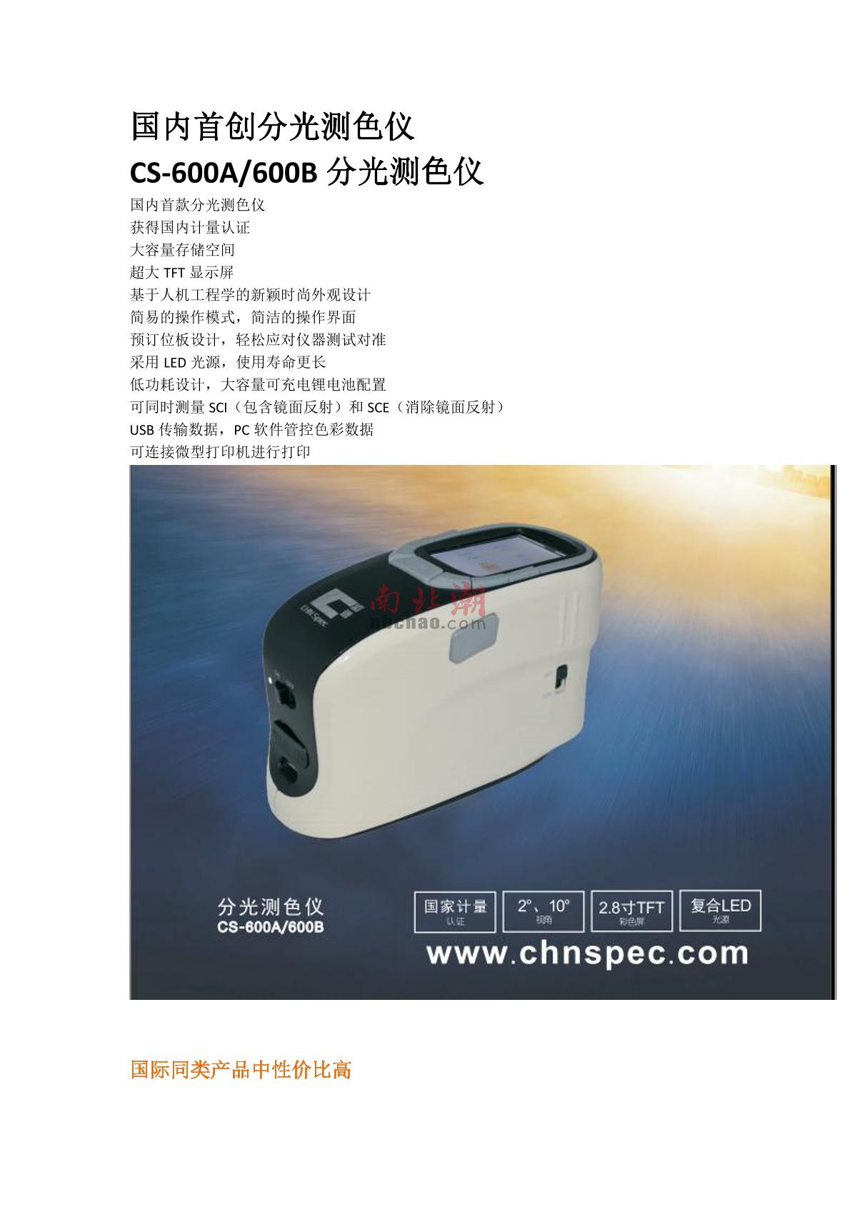 CHNSpec CS-600B Colorimeter brochure