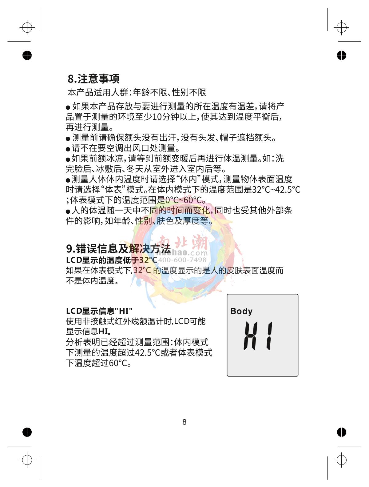 CEM DT-8806S Non-contact infrared frontal thermometer Manual,OI