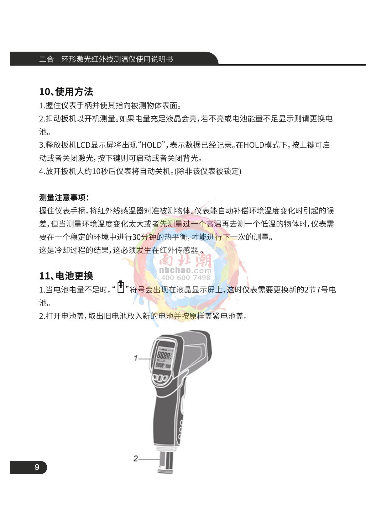 - 9UNI-T UT302A Infrared Thermometer Manual