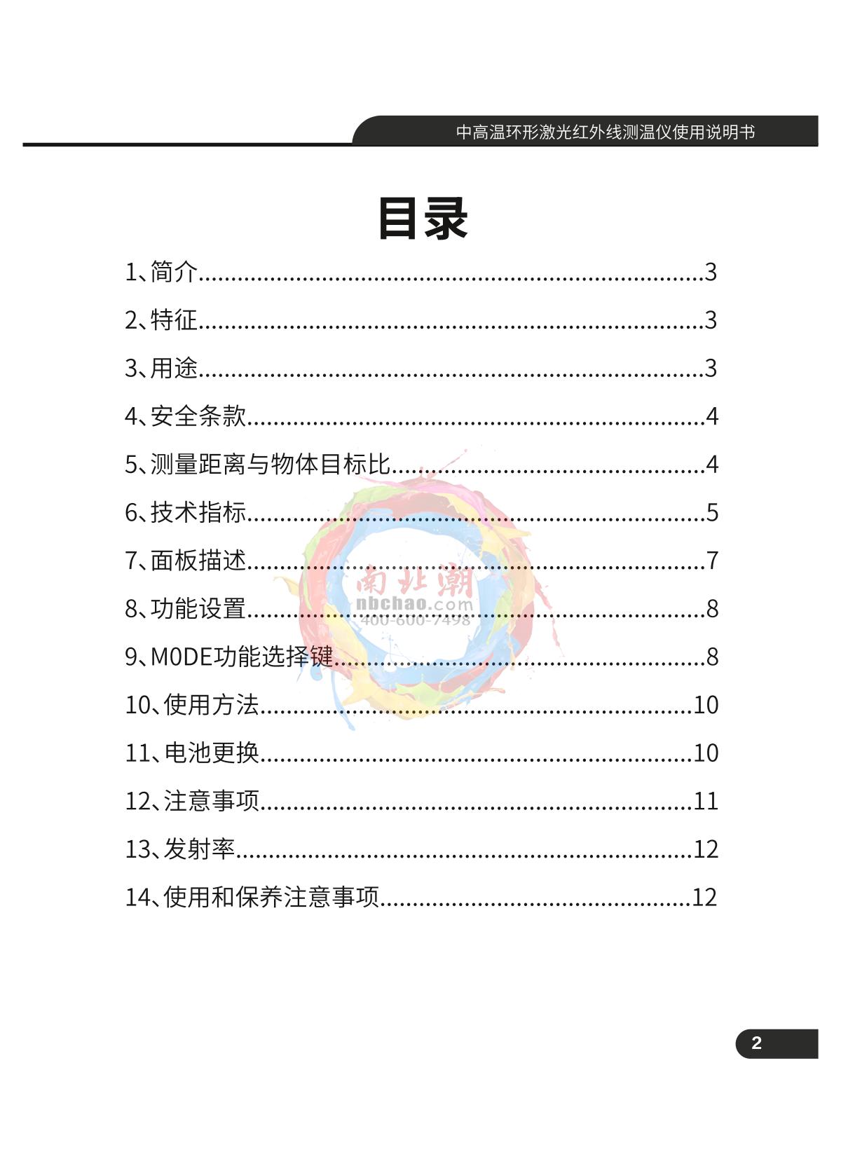 - 2CEM DT-833C Industrial Dual Laser Infrared Thermometer Manual