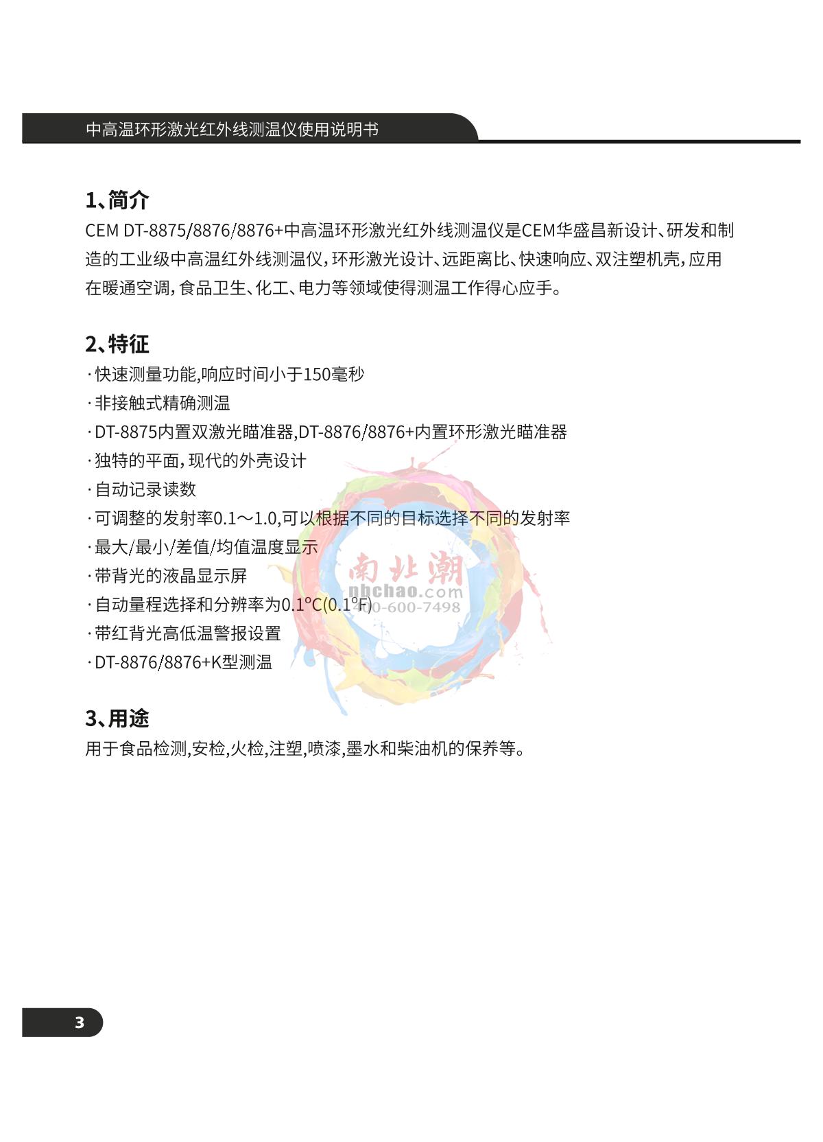 CEM DT-8876 Infrared Thermometer Manual,OI