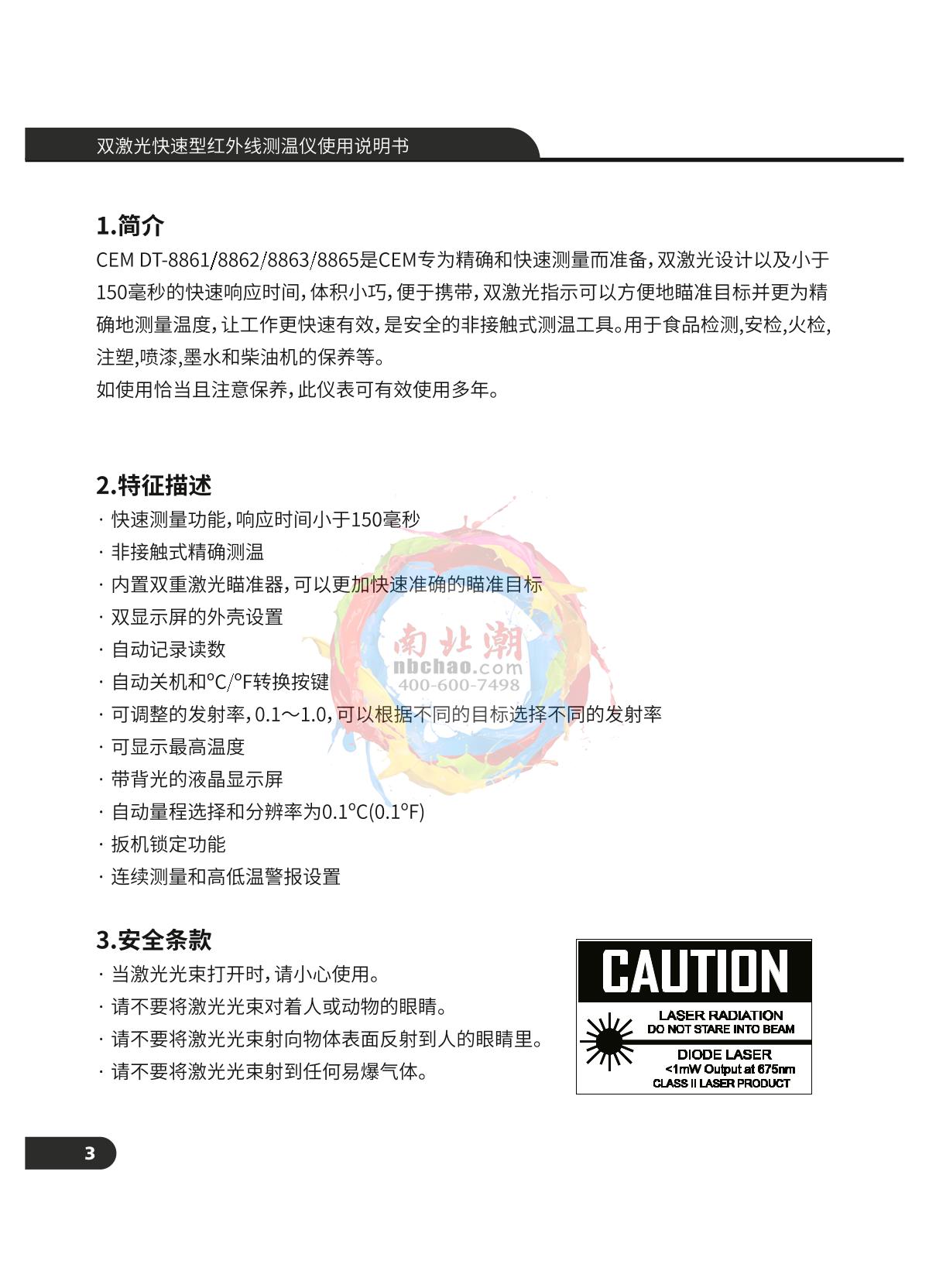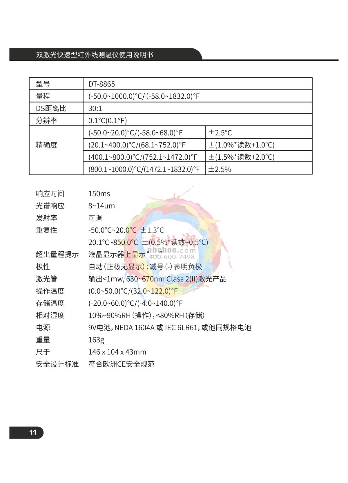 CEM DT-8865 Infrared Thermometer Manual,OI