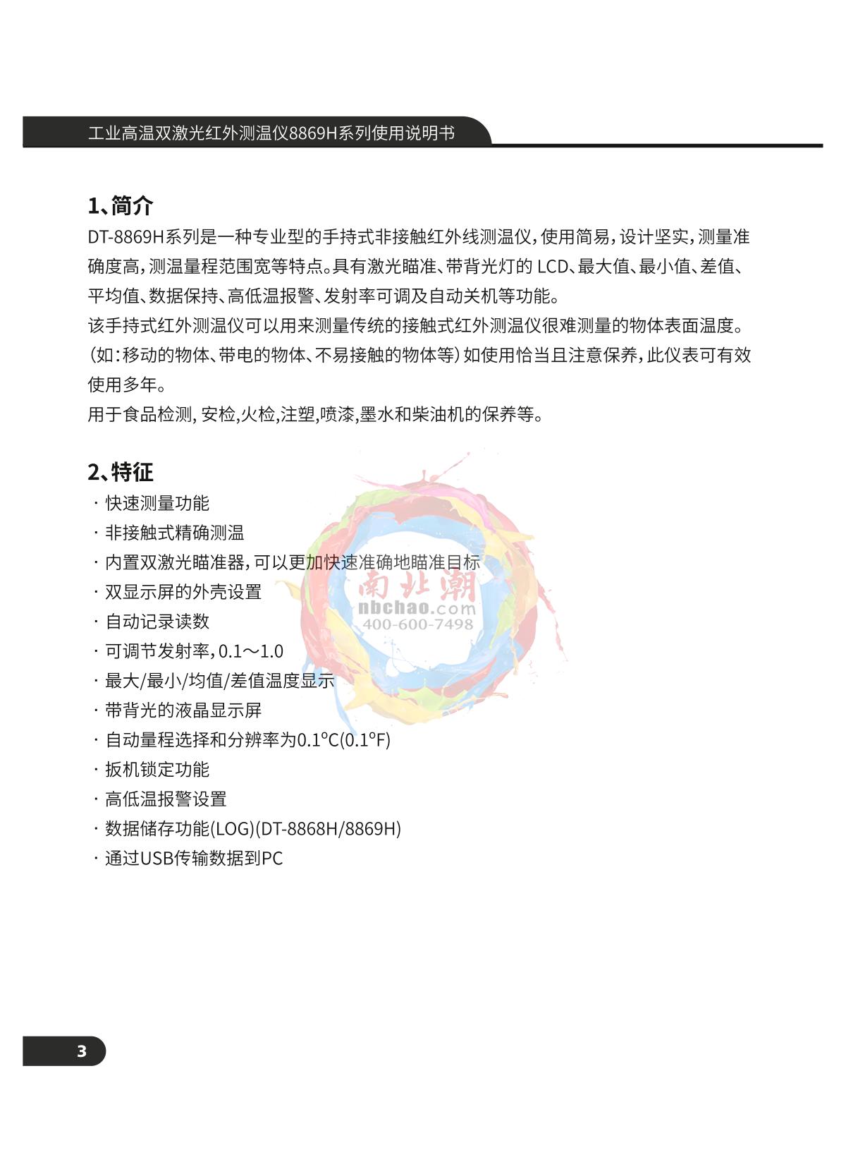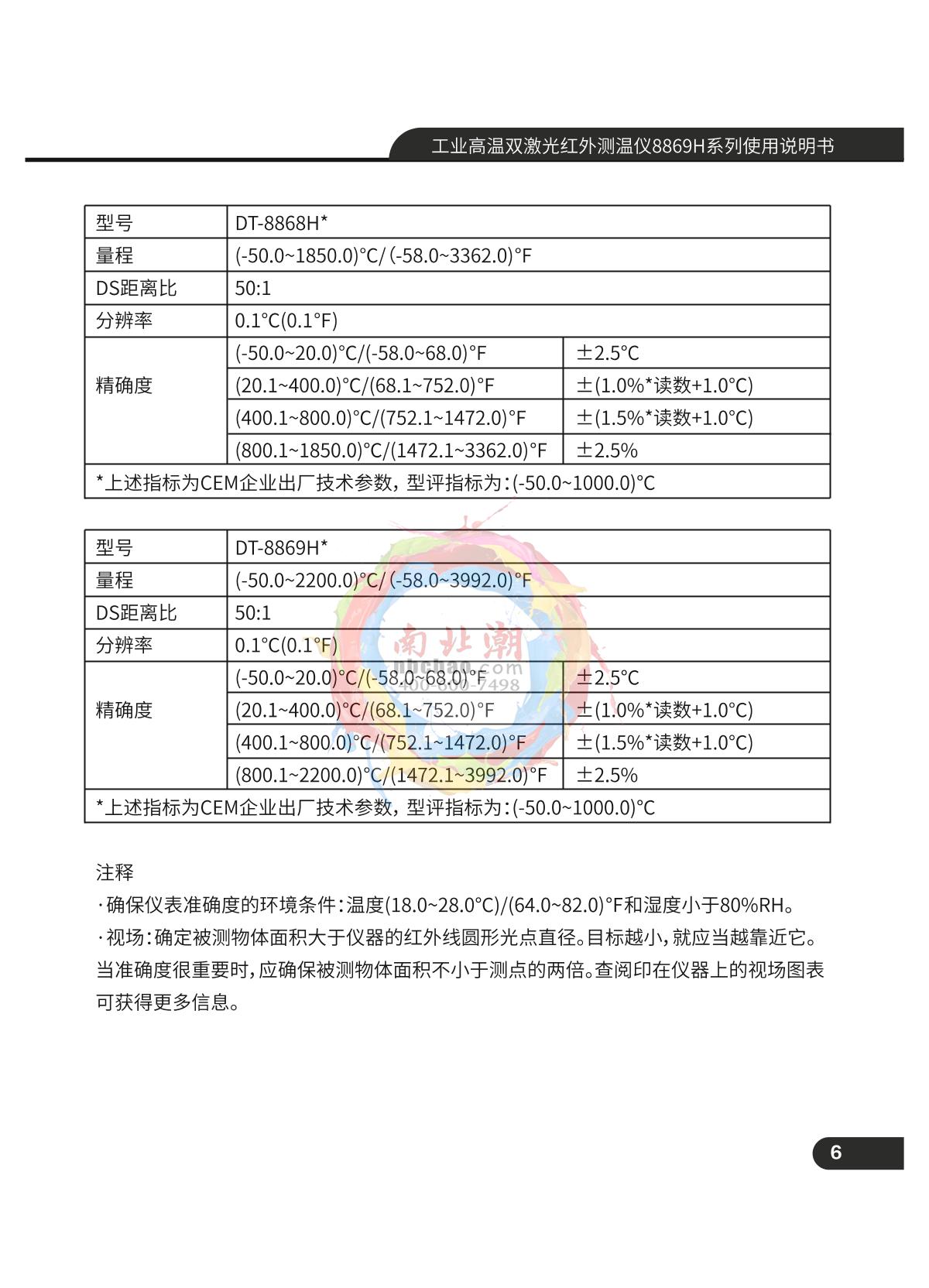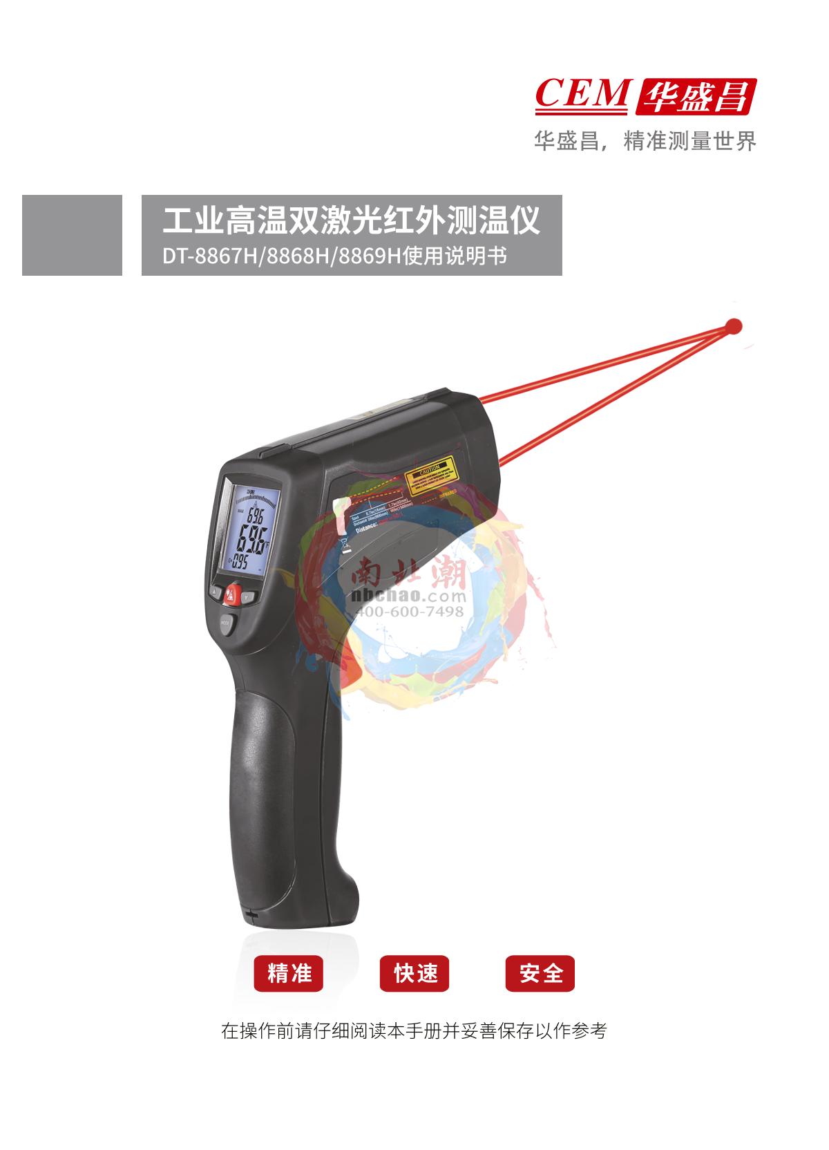 CEM DT-8868H Industrial High Temperature Dual Laser Infrared Thermometer Manual,OI