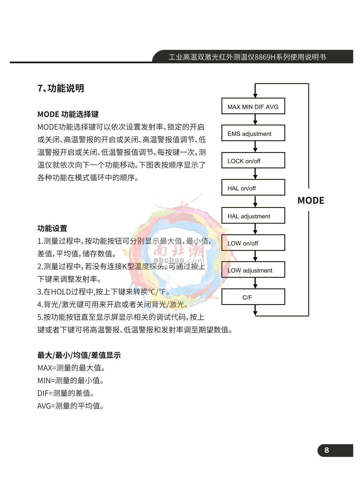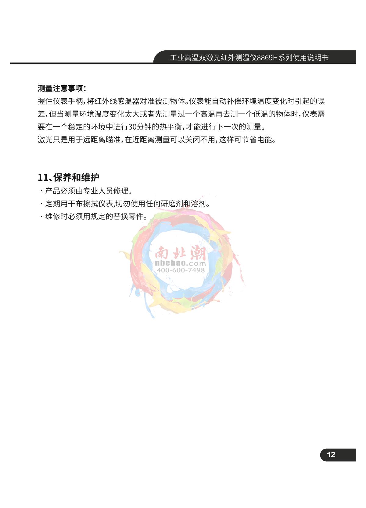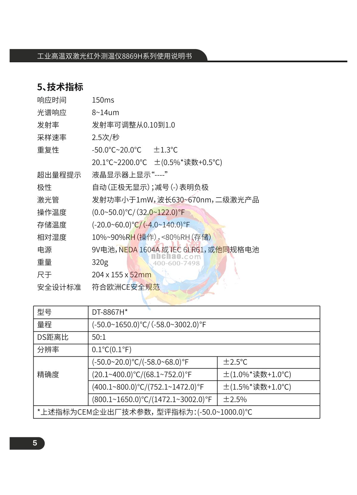 CEM DT-8868H Industrial High Temperature Dual Laser Infrared Thermometer Manual,OI