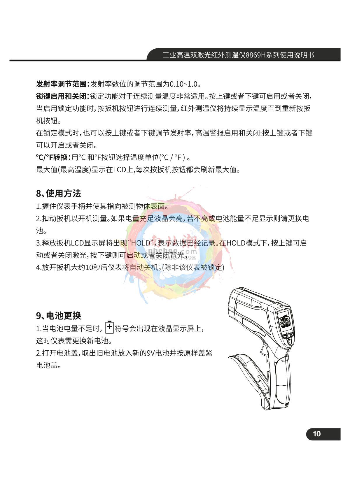 - 9UNI-T UT300C Infrared Thermometer Manual