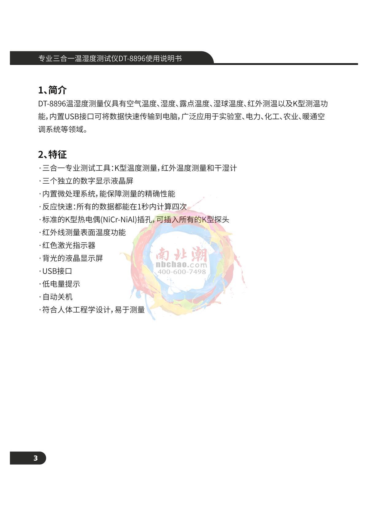 CEM DT-8896 Professional temperature and humidity Measurement Instrument Manual,OI