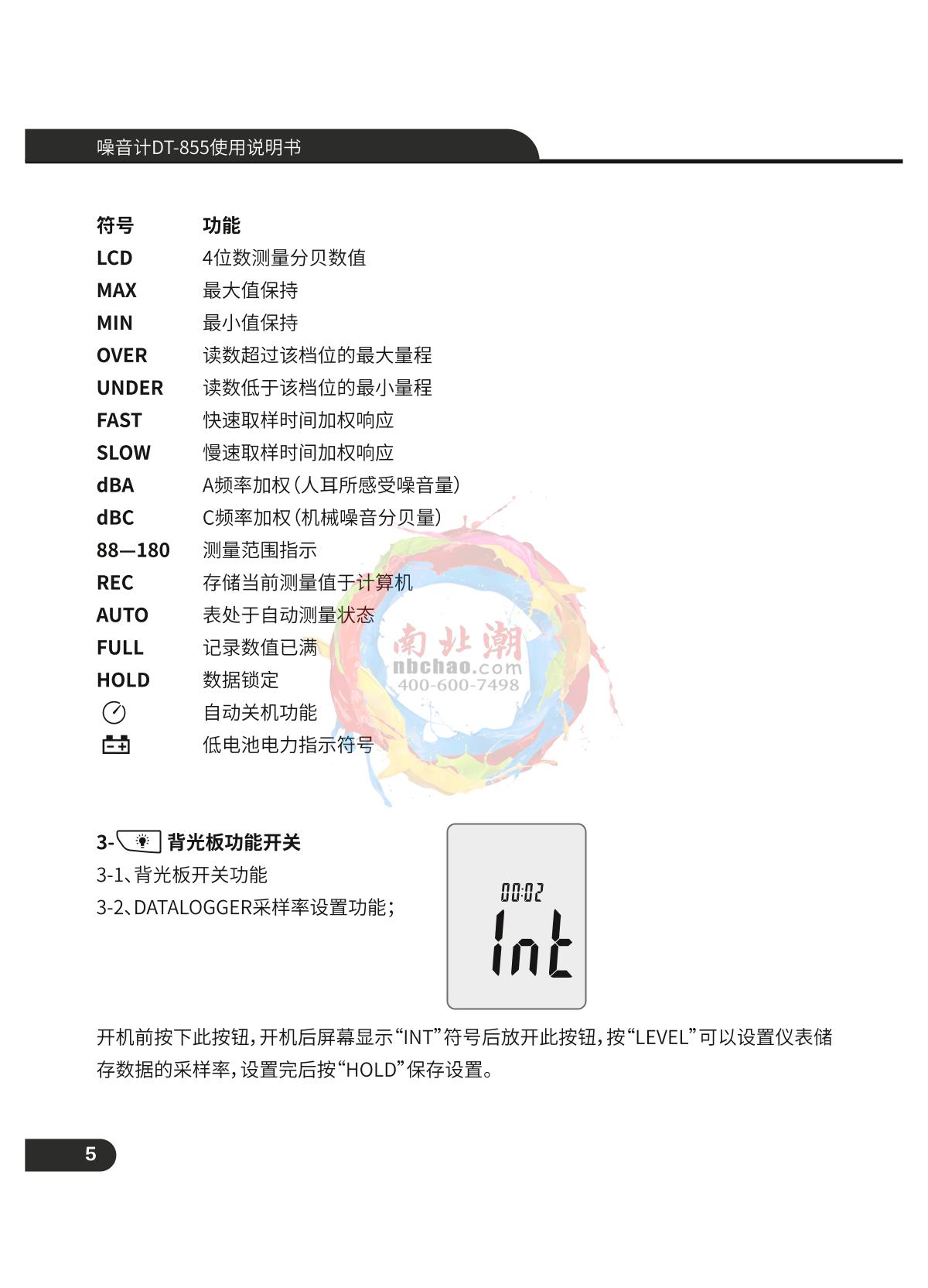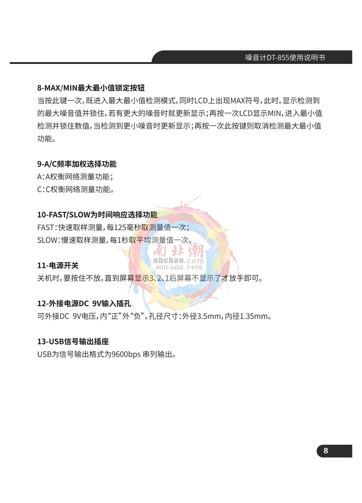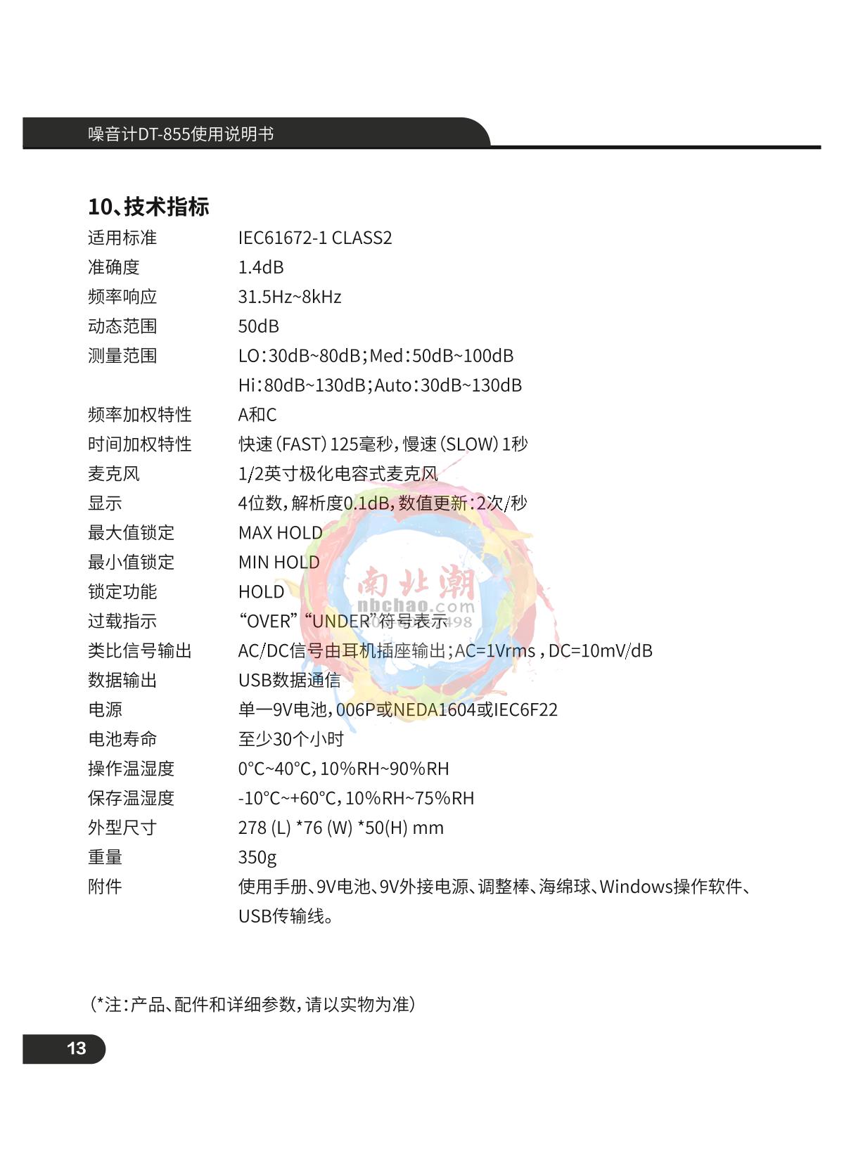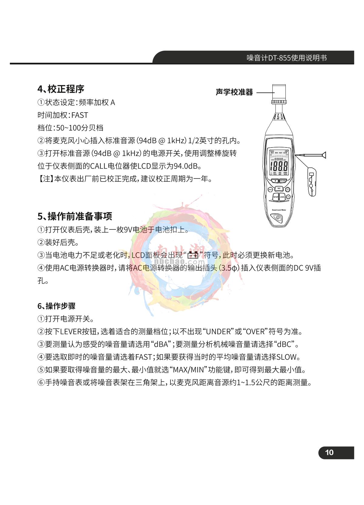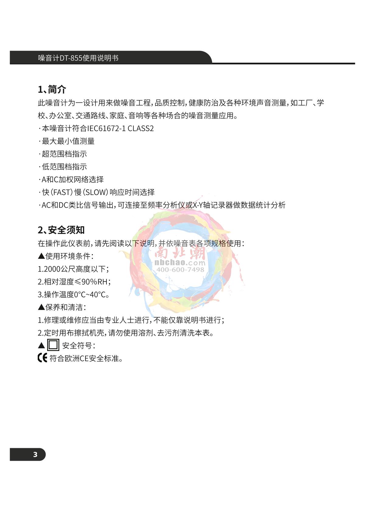CEM DT-855 Professional Sound Level Meter Manual,OI
