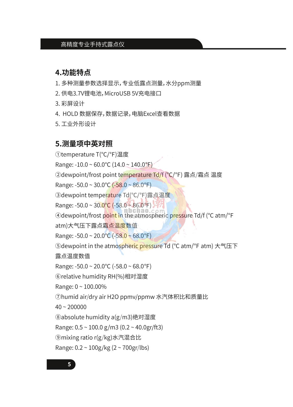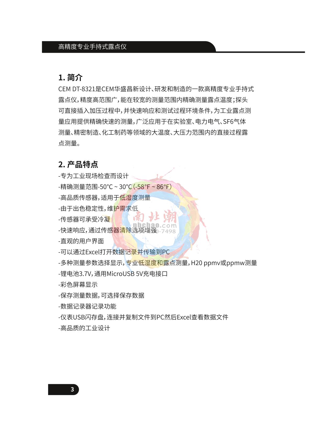 CEM DT-8321 High accuracy professional handheld dew point instrument Manual,OI