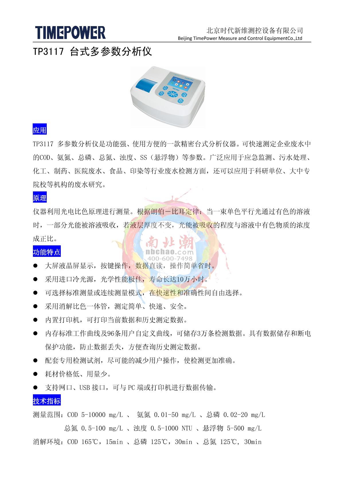 TIMEPOWER TP3117 Desktop multiparameter analyzer brochure