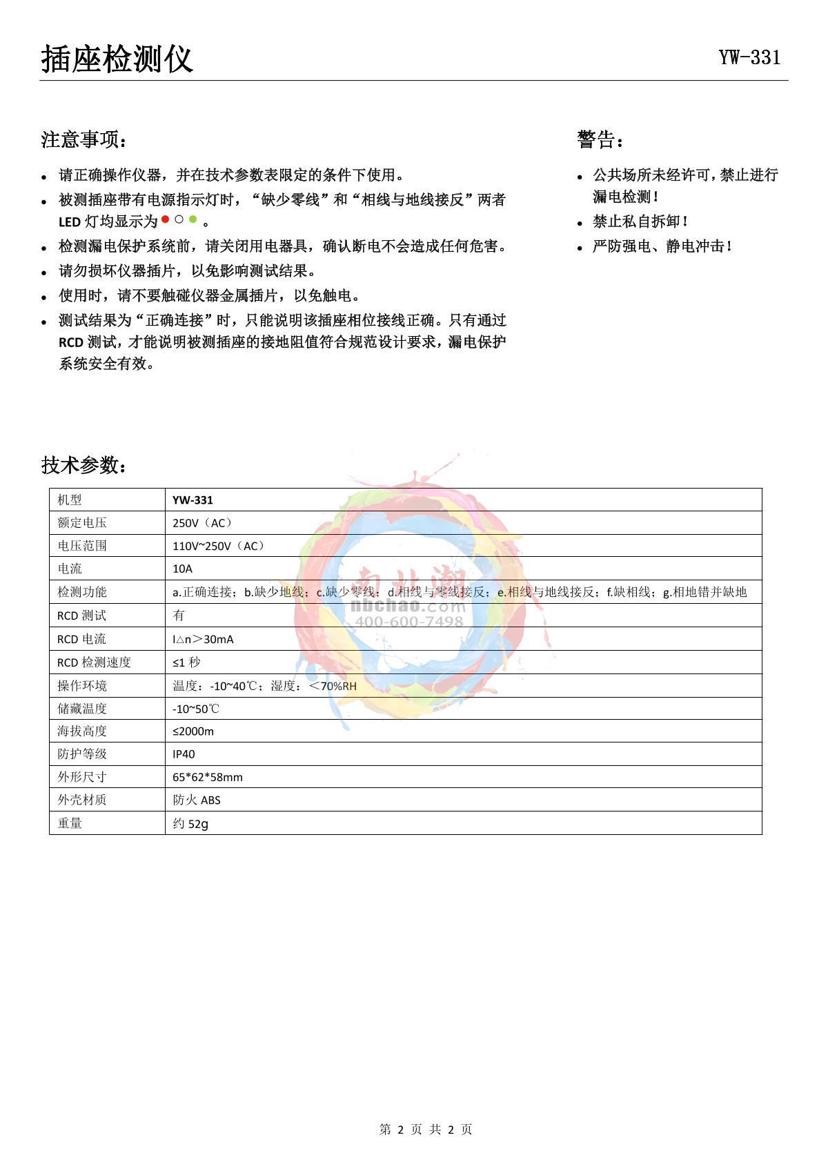YOWEXA yw-331 Socket Detector Manual,OI