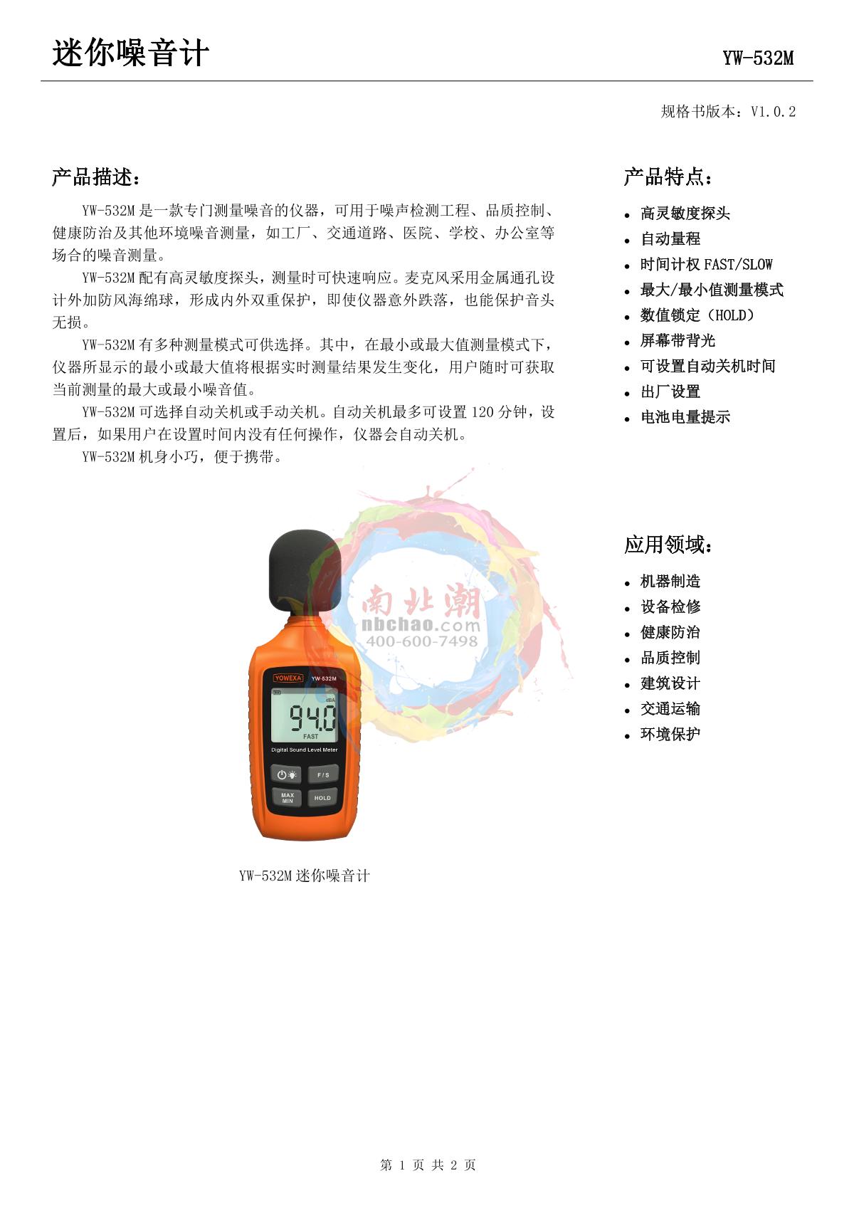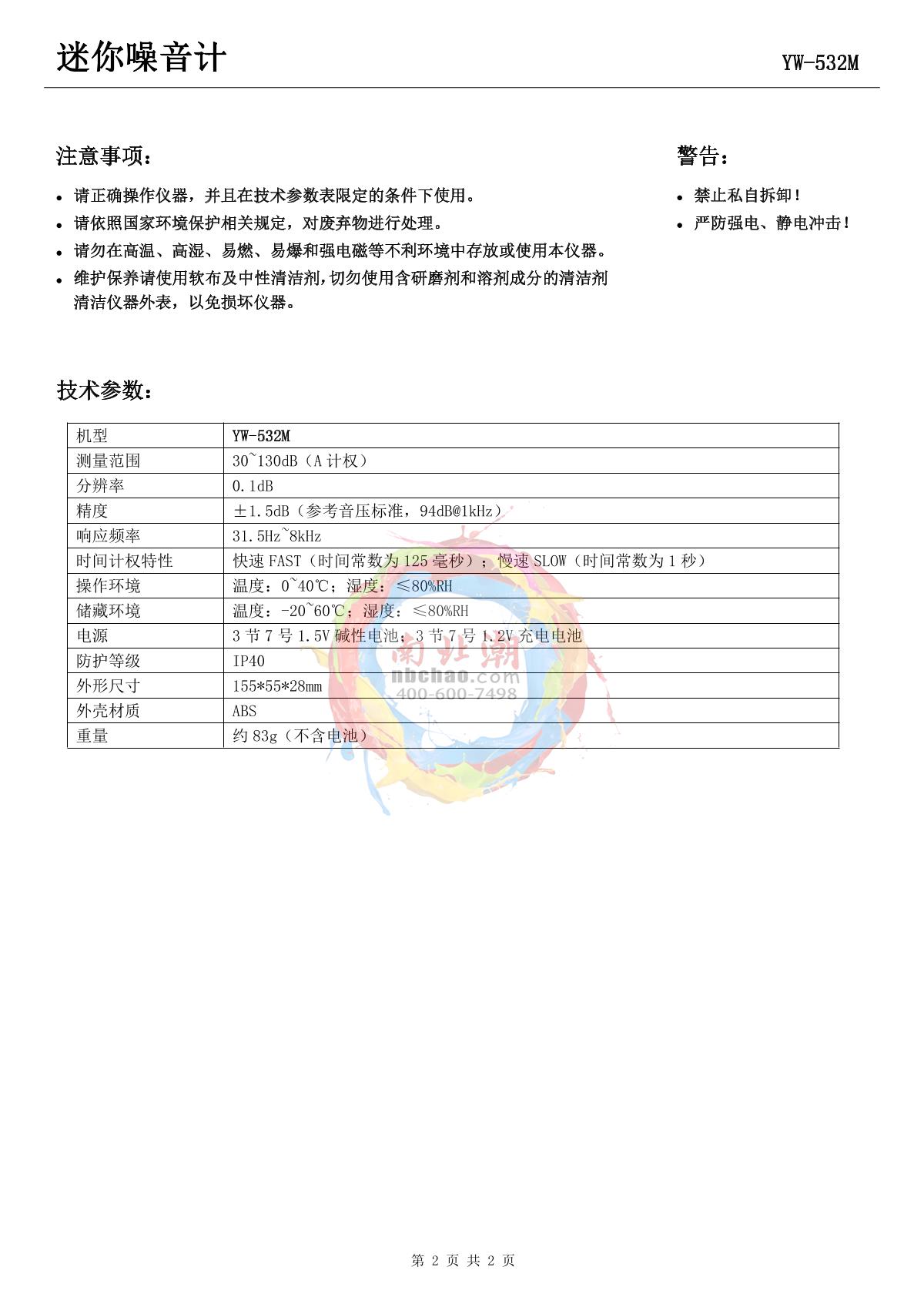 YOWEXA yw-532m Mini Sound Level Meter Manual,OI
