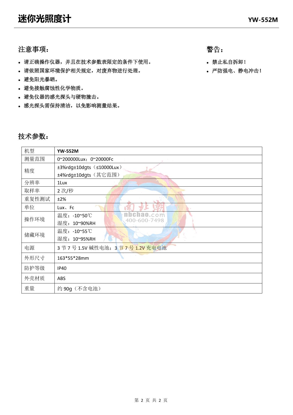YOWEXA YW-552M Mini luminometer Manual,OI
