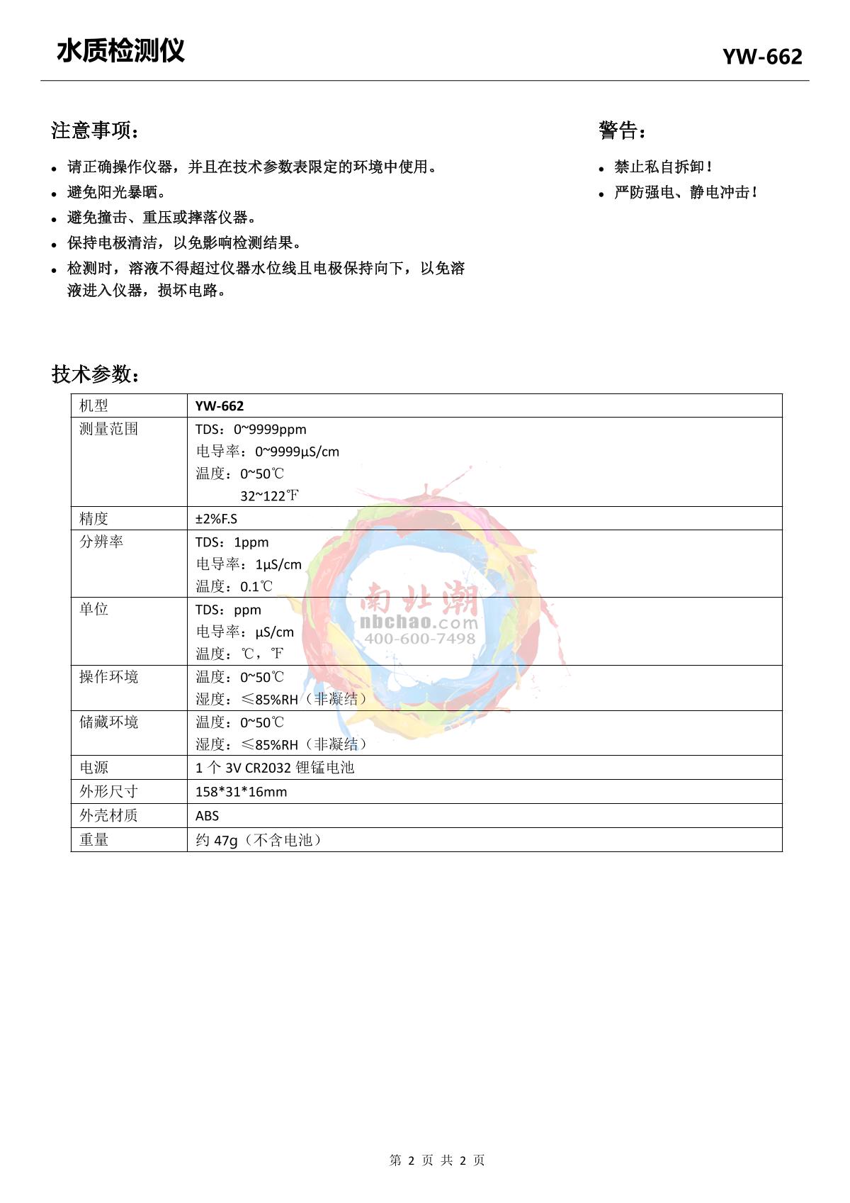 HANNA HI98302 High Range Total Solid solubility TDS0.00~10.00ppt(g/L)0.01 ppt(g/L)±2% F.S.@25℃¥740.0SE -