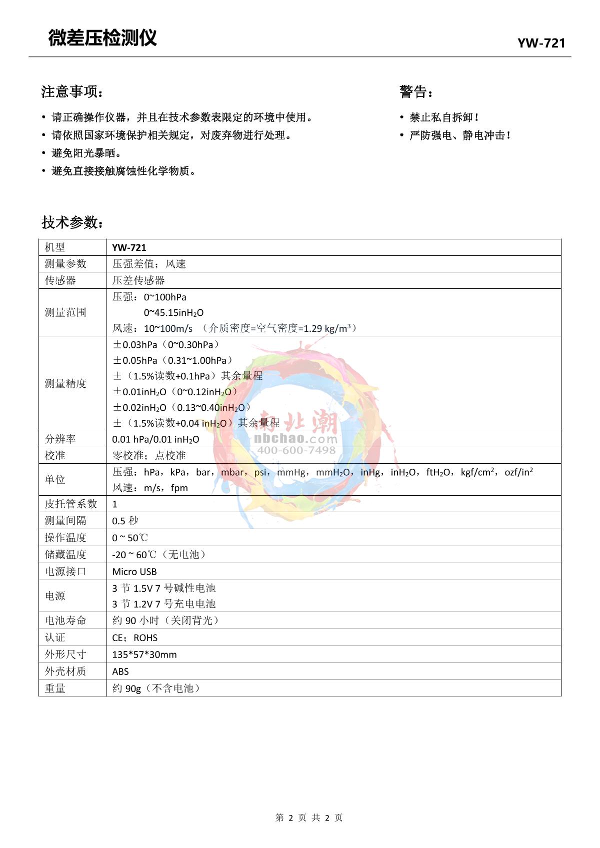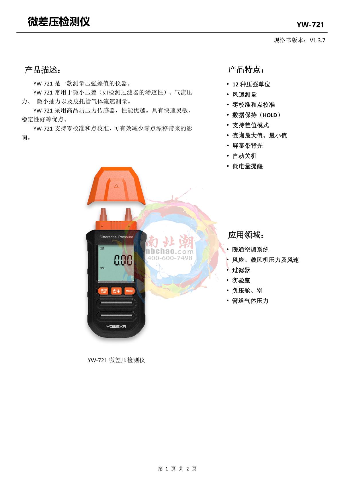 YOWEXA YW-721 Micro differential pressure Detector Manual,OI