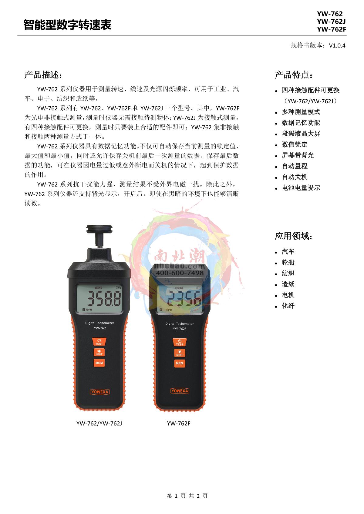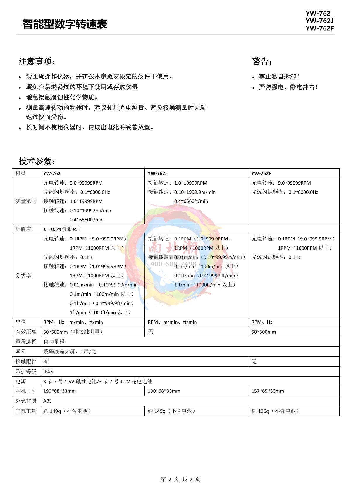 YOWEXA YW-762 Rotation speed gauge Manual,OI