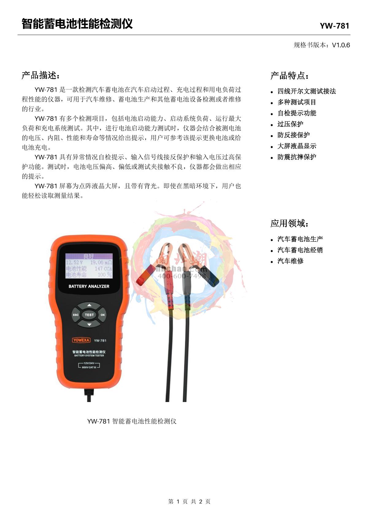 YOWEXA yw-781 Intelligent battery performance Tester Manual,OI