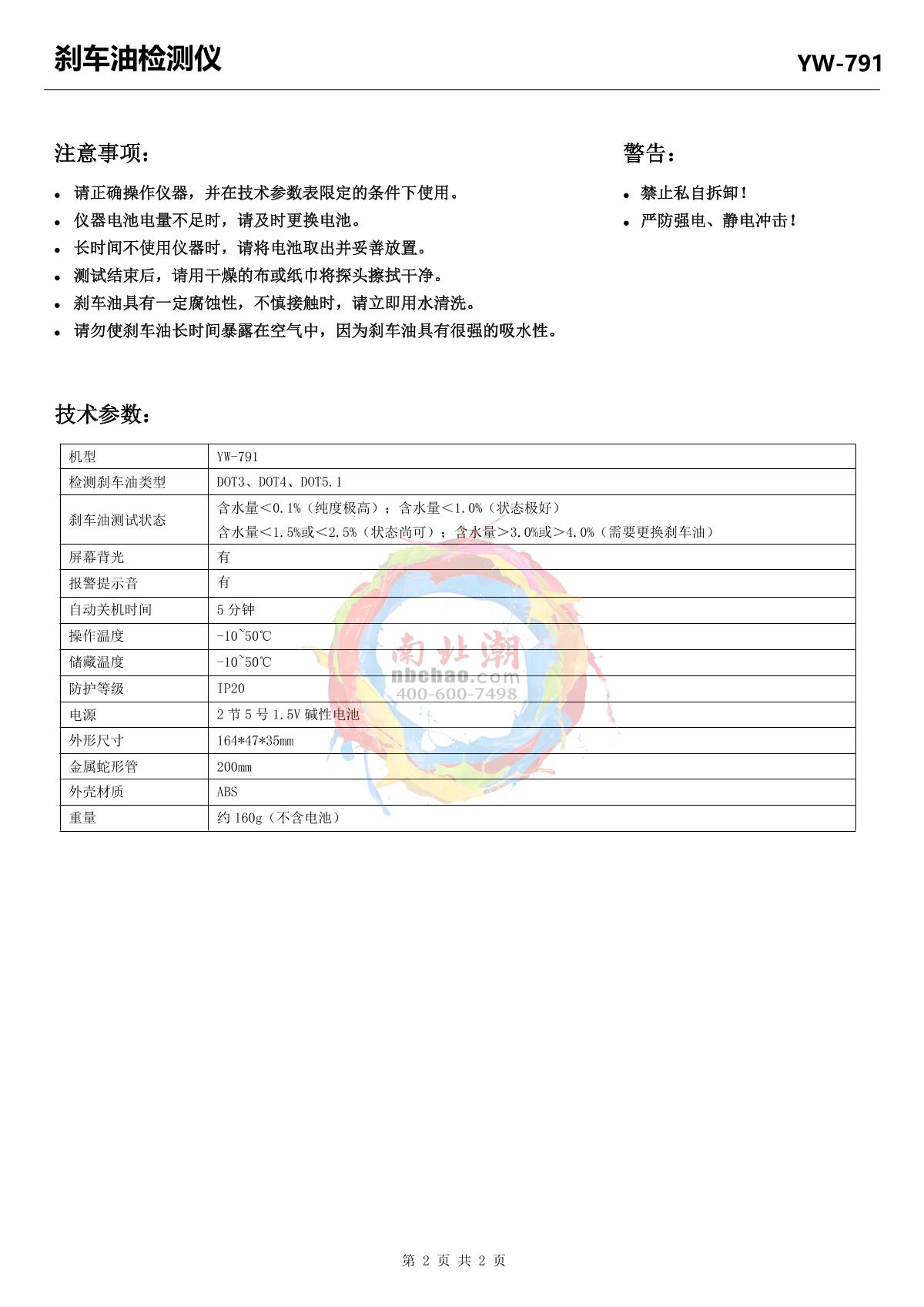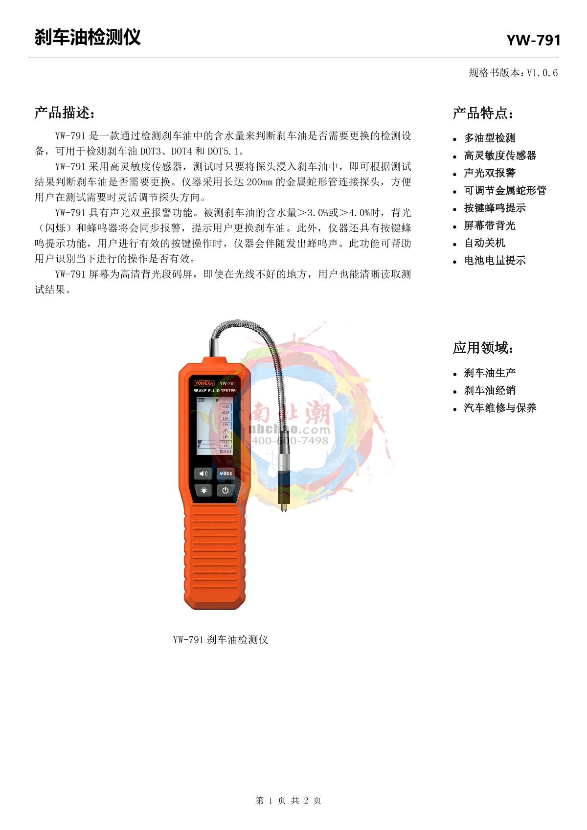 YOWEXA yw-791 Brake oil Detector Manual,OI