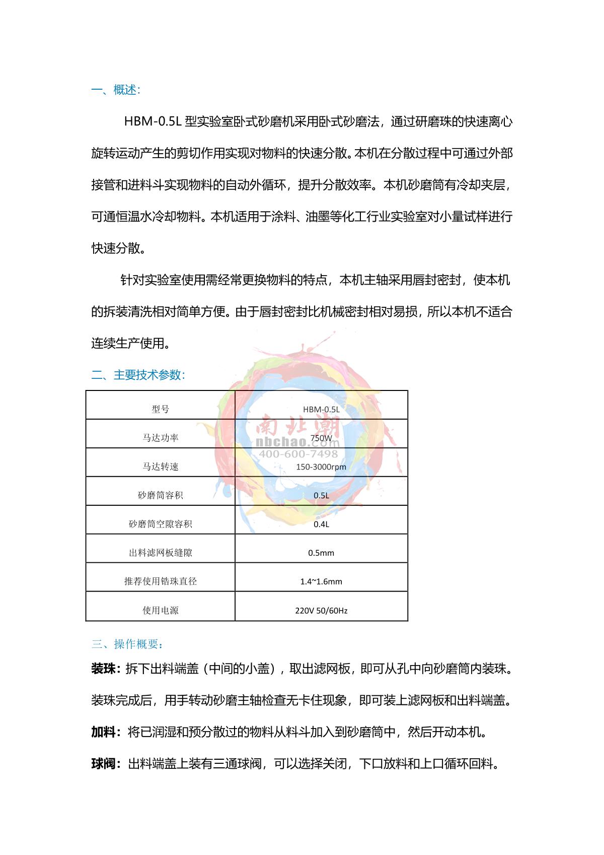 Moderner HBM-0.5L Laboratory horizontal sand mill brochure